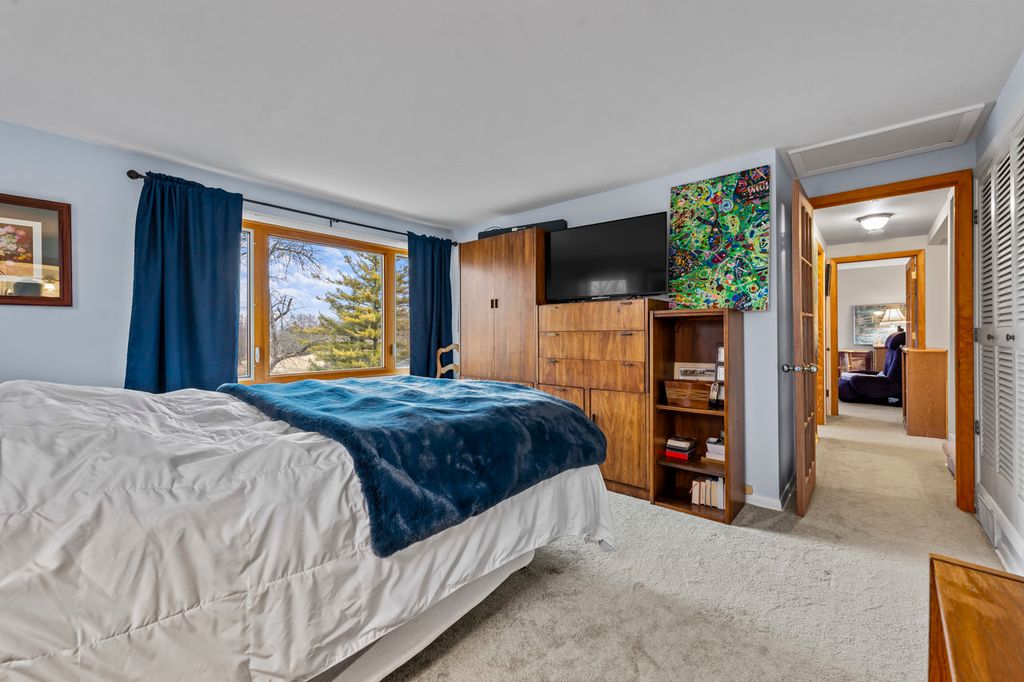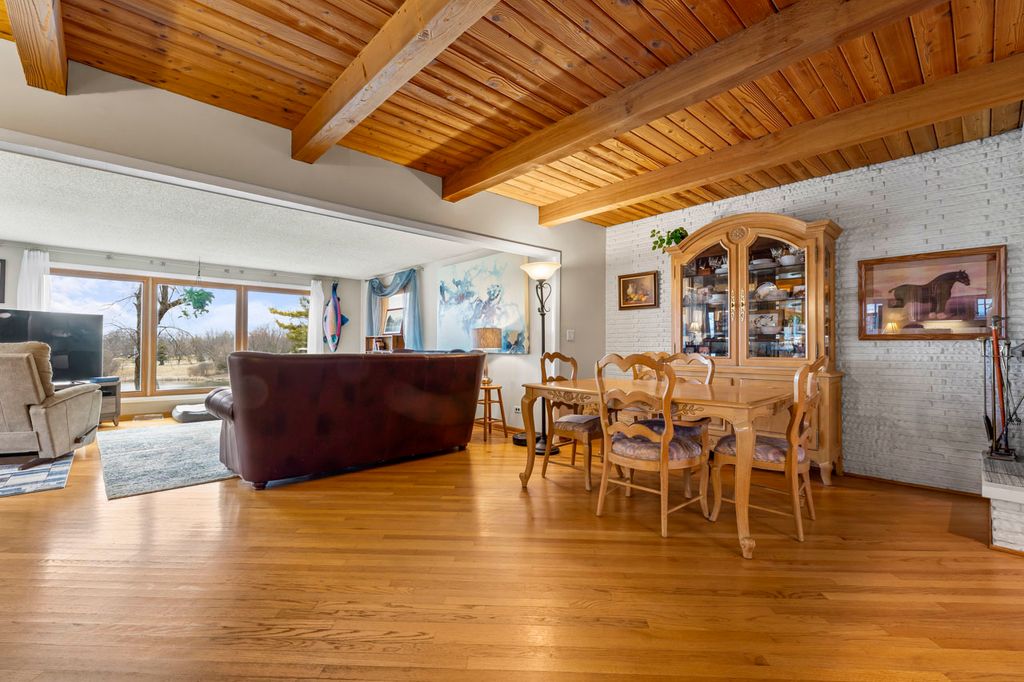 Enjoy tranquil waterfront living in the quiet Lakeland Estates subdivision, where this beautifully positioned home sits on 1.5 acres with stunning water views and access to a private 15-acre lake perfect for fishing, swimming, electric boating, and winter ice skating. The main level offers a bright, open floor plan designed for both comfortable daily living and entertaining. At the front of the home, the formal living room welcomes you with beautiful hardwood floors that continue into the formal dining room. A three-sided fireplace, set just two steps down from the living and dining areas, creates a warm focal point shared with the family room, which features a wall of windows overlooking the lake. Hardwood floors run throughout the living room, dining room, and family room, while the dining room and kitchen feature rich wood ceilings that add warmth and character. The kitchen is equipped with a double oven and electric cooktop and offers wonderful views of the spacious backyard and water beyond. The main floor also includes a private office with carpeting, perfect for working from home, along with a first-floor laundry room with utility sink for added convenience. Upstairs, the primary suite offers beautiful lake views and includes an ensuite bathroom with tile flooring and a shower. Two additional bedrooms-both with water views-share a hall bathroom with a tub/shower combination. Outdoor living is just as inviting, with a large wood deck overlooking the yard and lake, ideal for relaxing or entertaining. The property also includes a private dock, paddle boat, and dog run, making it easy to enjoy the full lakefront lifestyle. Additional features include a two-car attached garage and a serene setting that offers both privacy and natural beauty. The home is conveniently located near the Barrington and Fox River Grove Metra stations, as well as Lakewood Forest Preserve and the Fox River, providing easy access to commuting and outdoor recreation. Experience the charm and tranquility of waterfront living in Lakeland Estates.