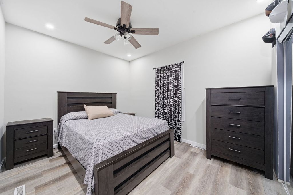 Welcome home to this beautifully updated, move-in ready 3-bedroom, 2-bathroom two-story gem featuring an unfinished basement and an abundance of versatile living space! From the moment you arrive, you'll appreciate the easy-to-maintain exterior, designed for both durability and convenience. The property boasts a fully fenced, level backyard - perfect for pets, play, or entertaining - along with a spacious rear deck ideal for grilling, hosting gatherings, or simply relaxing outdoors. A generous three-spot parking pad in the rear provides ample off-street parking, and the impressive 20x10 storage shed offers exceptional space for tools, hobbies, lawn equipment, or additional storage. Step inside to discover a bright, airy interior enhanced by stylish vinyl flooring and recessed lighting throughout, creating a modern and cohesive feel. The beautifully updated kitchen serves as the heart of the home, showcasing sleek quartz countertops, abundant cabinetry, and a large island with breakfast seating, perfect for casual dining and entertaining. The thoughtfully designed main level features two spacious bedrooms and a well-appointed full bathroom with a tub/shower combination, offering comfort and functionality. Upstairs, you'll find a private and inviting bedroom retreat complete with its own full bathroom featuring a walk-in shower. The upper level also includes a flexible bonus room, ideal for a home office, media room, playroom, or guest space - the possibilities are endless! The unfinished basement provides incredible potential for future expansion, workshop space, storage, or customization to suit your needs, and includes convenient laundry hookups. This home perfectly blends modern updates, flexible living space, and fantastic outdoor features - all ready for its next owner to enjoy!