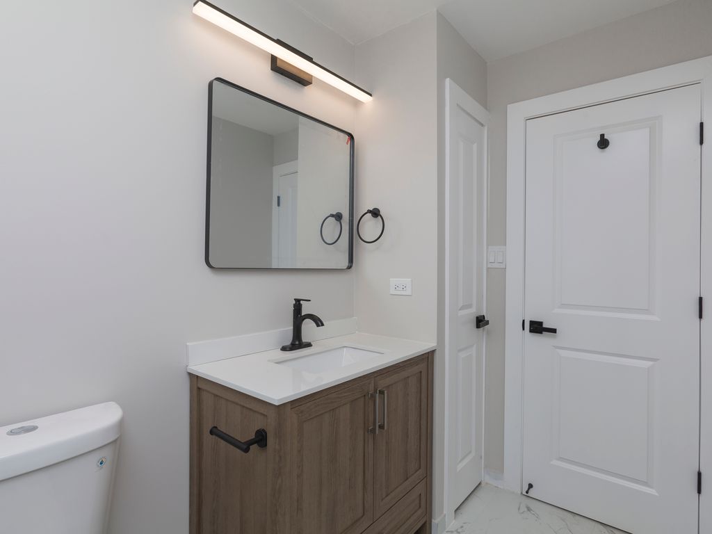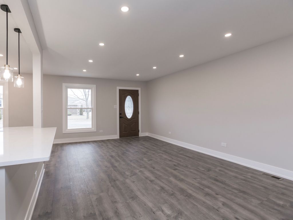 OMG!! This home rocks!! Professional rehab! All permits pulled. Driveway for garage and apron will be replaced with asphalt before closing. Little too cold at moment. Exterior features brick and alum siding. 2 car attached garage with new garage door. Big corner lot with back yard that's deep. All new vinyl clad thermo windows t/o. Interior features new wood laminate floors t/o. 5 1/4in baseboard, 2 panel doors, wood casing around doors and windows. wood steps with white risers, custom light fixtures and loads of led lights t/o. Kitchen features white 42" soft close cabinets, deep SS sink and SS appliances, tiled back splash, breakfast bar. Full bath has new tub 12x24 ceramic walls and floor, vanity, counter and fixtures. 1/2 bath features new vanity counter 12x24 tile floor. Laundry room with washer, dryer, furnace and ac newer. All rooms decent size. Come see this beautiful home and make it yours.