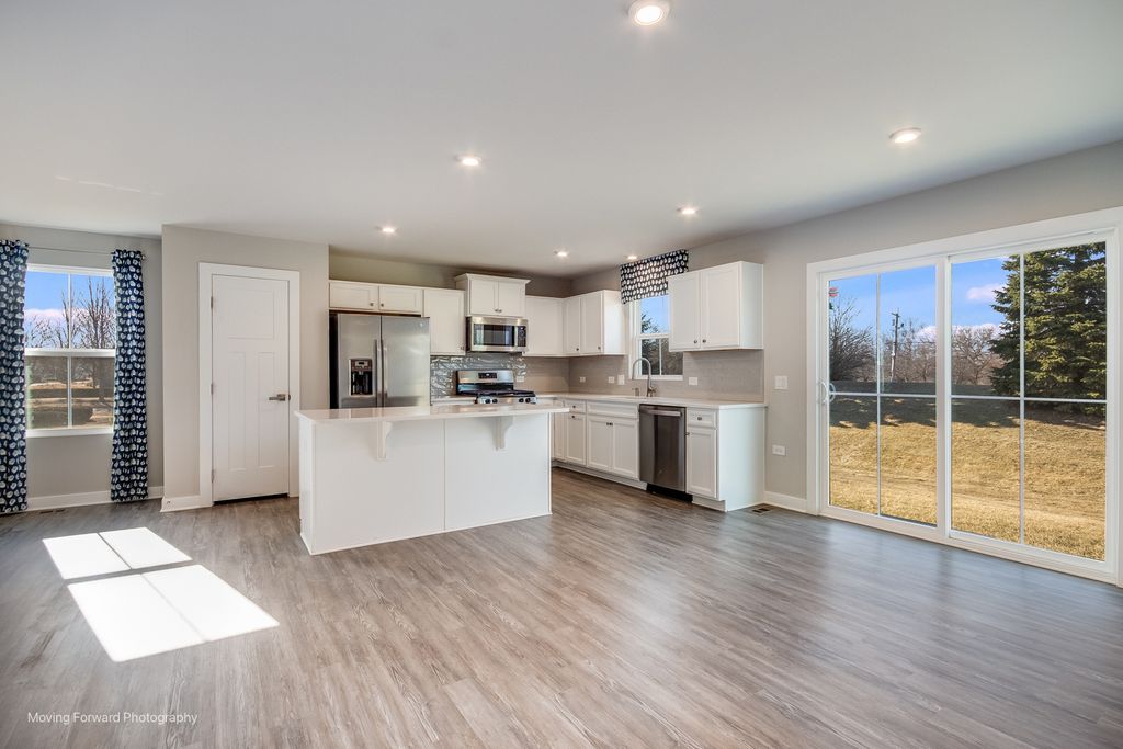 As good as new! Built in 2021 and never occupied, this former builder's model presents a rare opportunity in the highly sought-after Grand Reserve community of Yorkville. This desirable Cayman model offers 3 bedrooms, 2 full bathrooms, and 1,562 square feet of thoughtfully designed living space. The open-concept floor plan creates seamless flow between the kitchen, dining, and living areas - ideal for both everyday comfort and effortless entertaining. Abundant natural light enhances the modern layout, while the well-appointed kitchen serves as the heart of the home with custom white cabinetry, upgraded quartz counter tops, and modern stainless appliances. The private primary suite features a spacious bedroom, en-suite bath, and walk-in closet, while two additional bedrooms provide flexibility for guests, a home office, or growing families. Every space was intentionally designed to maximize functionality without sacrificing style. Enjoy the peace of mind that comes with newer construction - mechanicals, roof, windows, and major components are all just a few years old - without the wait time, construction delays, or added expense of new builds. Located in one of Yorkville's most desirable subdivisions, residents of Grand Reserve enjoy a welcoming neighborhood atmosphere with convenient access to parks, schools, shopping, and dining. Move-in ready, pristine condition, and truly one-of-a-kind - this is your chance to own a never-lived-in former model home in an established community.