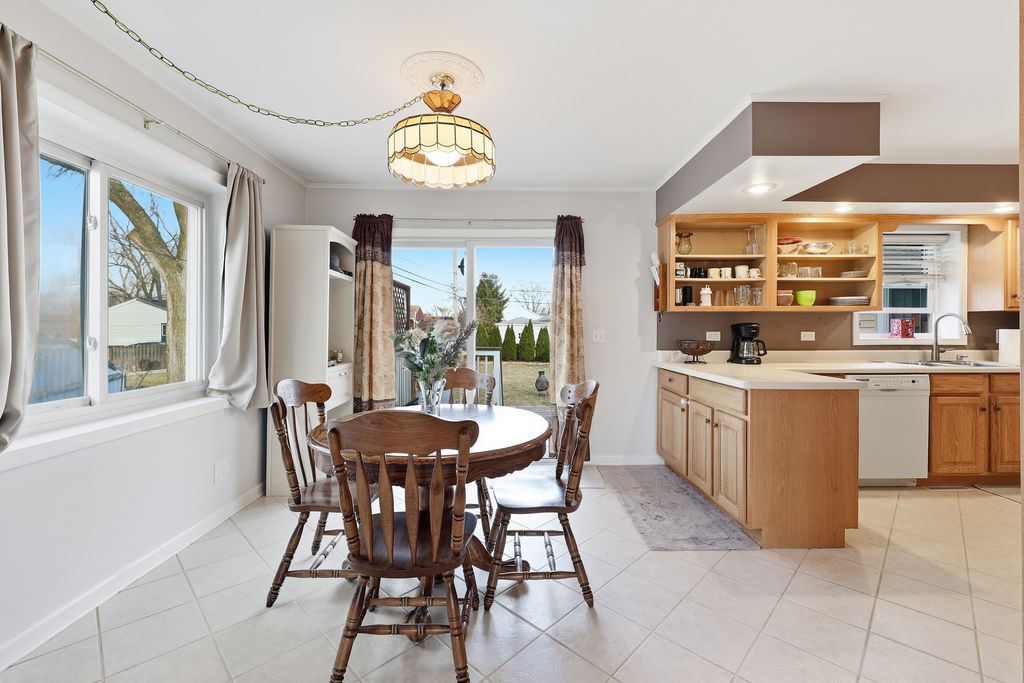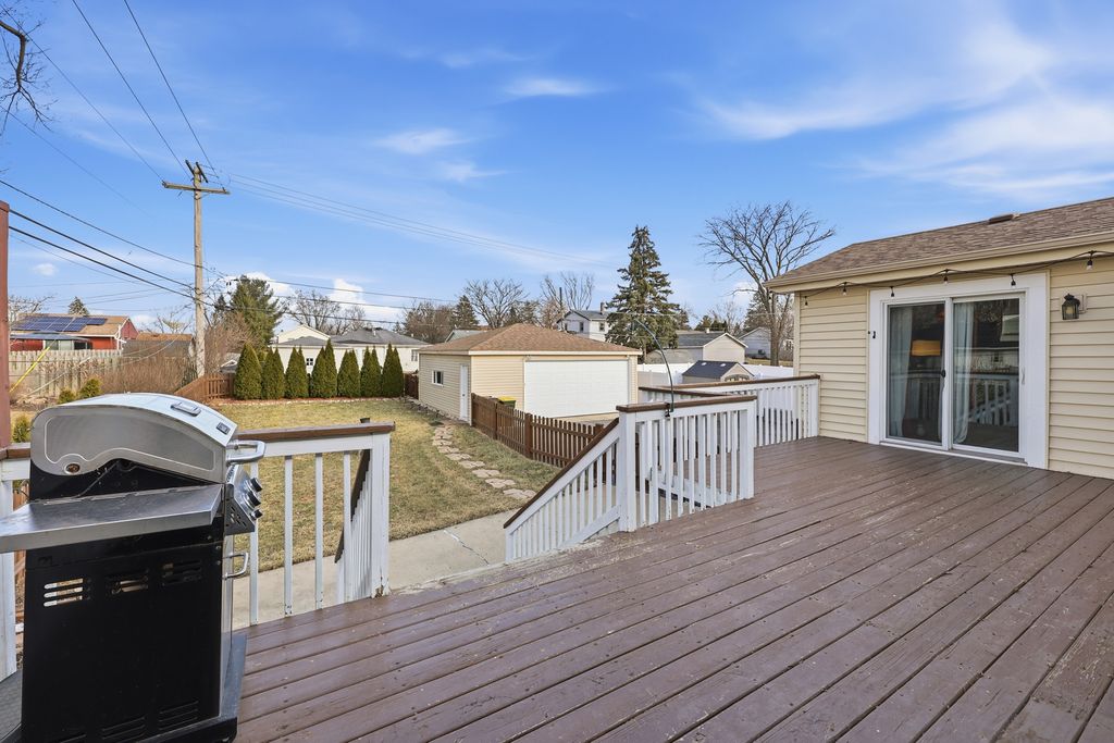 Beautifully maintained home tucked in the Lake In The Hills community. Walk to public beach, parks, and schools. This home welcomes you with sun filled rooms and lots of entertainment space. Features 5 bedrooms and 2 full and 1 half bath. Main level features a wood burning fireplace and a serene primary suite with sliding doors to deck, professionally landscaped backyard as well as vaulted ceilings, skylight, and private half bath. A perfect oasis for unwinding after a long day. Walk out lower level is perfect In-law arrangement complete with second full bath. Wood floors, crown molding, 2.5 car garage & additional parking. Spacious kitchen with ceramic tile, plenty of cabinets and sliding doors with views of deck and backyard. The lower level has a spacious bedroom with walk in closet, family room, and storage. 2019 new windows & sliders with lifetime warranty, fence with no-rot-posts, deck stairs replaced. 2018 new carpet, garage door opener, sump pump with grinder. 2016 new Leaf Guard gutters and downspouts. Water heater new in 2025. 2015 new dryer. 2014 new roof. 2012 new Trane 2-stage furnace, AC, humidifier, air cleaner. 2010 new washer. Close to restaurants and shopping, parks and trails!