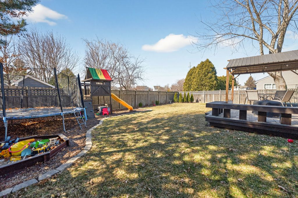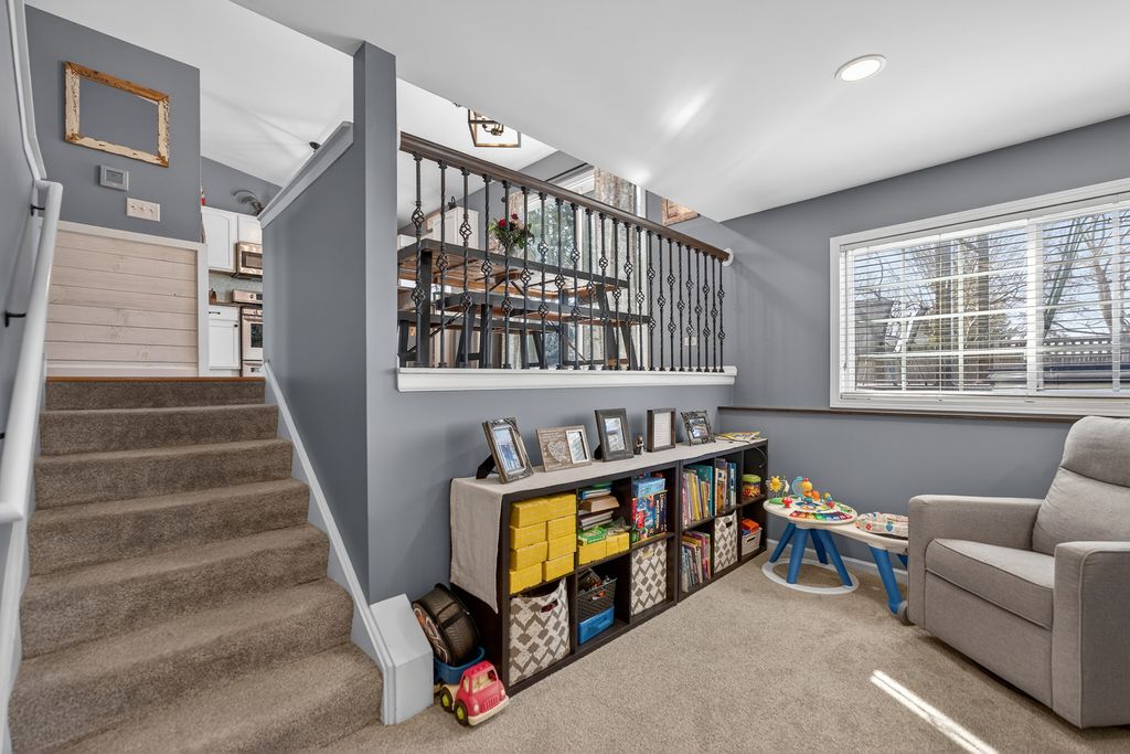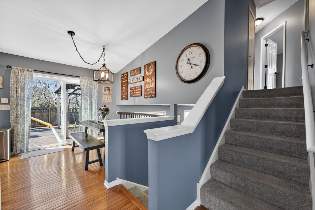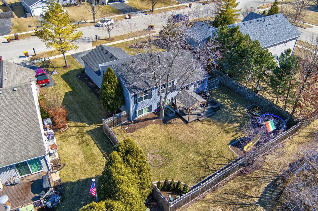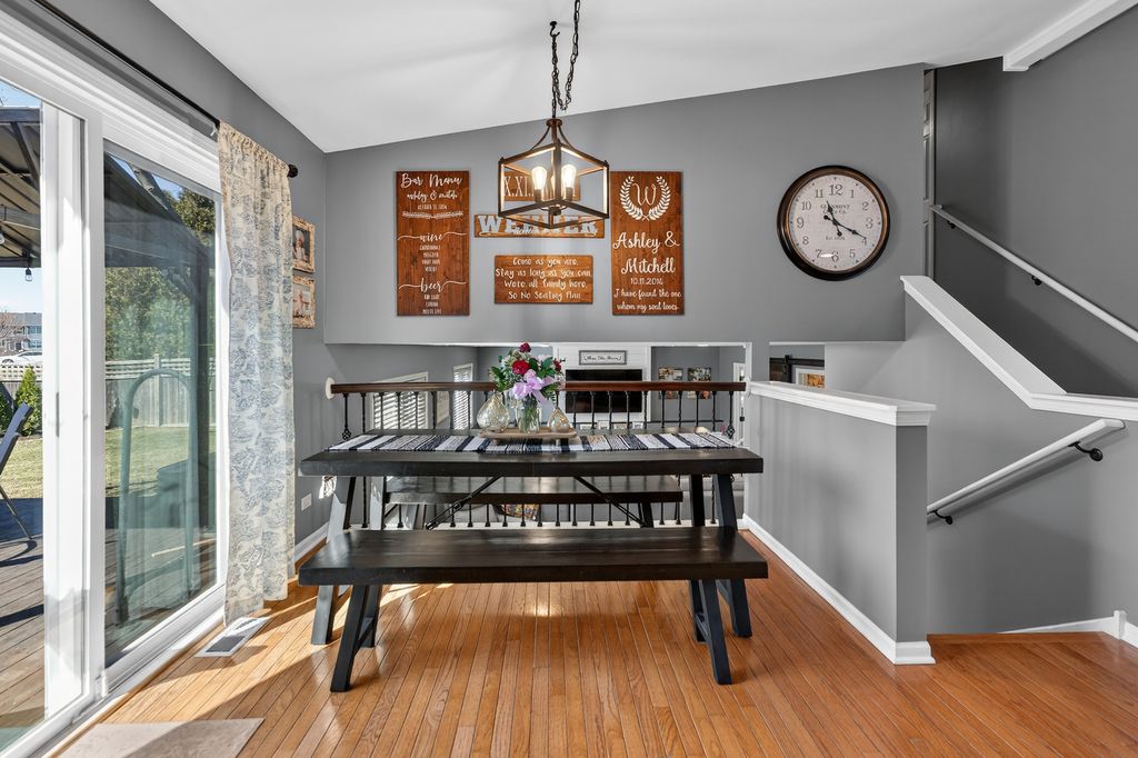 Move-in ready and loaded with new! Super spacious 3-bedroom, 2-bath quad-level modern farmhouse with separate office and over 2,400 sq ft of open-concept living space across four finished levels. The main level features a large living room and updated eat-in kitchen, stainless steel appliances, pantry, hardwood flooring, and new sliders. Upstairs offers three generous bedrooms and an updated full bath. The master bedroom has a walk-in closet. The English basement includes a sizeable family room, separate office or potential 4th bedroom with French doors, and another updated full bath. The finished lower level provides a large rec room and excellent storage space. Tons of NEW including fresh paint, new carpeting, updated lighting, newer appliances, newer mechanicals, and numerous recent improvements throughout. Step outside to a fully fenced backyard with an expansive deck and pergola, playset, trampoline, and sandbox all set on a spacious lot perfect for kids, pets, and entertaining. Low taxes. Prime location across from Northwestern Medicine Huntley Hospital and close to bike trails, the library, Huntley Square, shopping, dining, and top-rated Huntley schools. Truly nothing to do but move in!