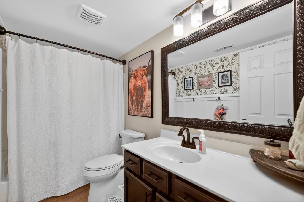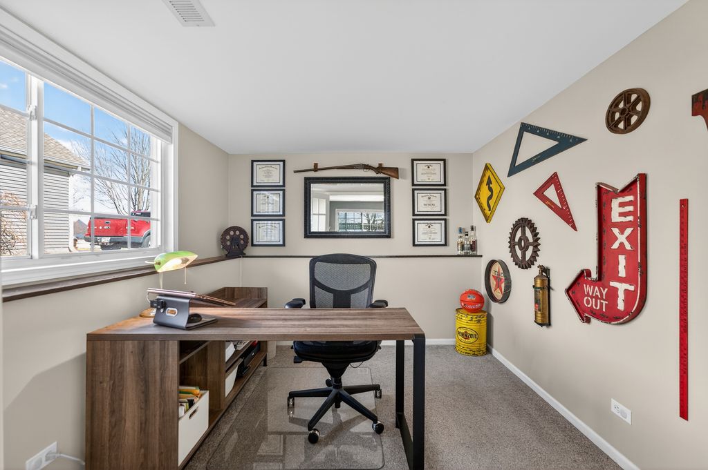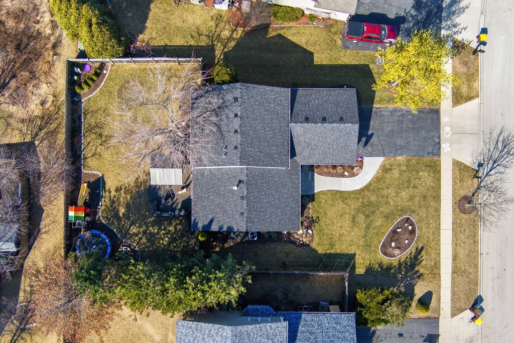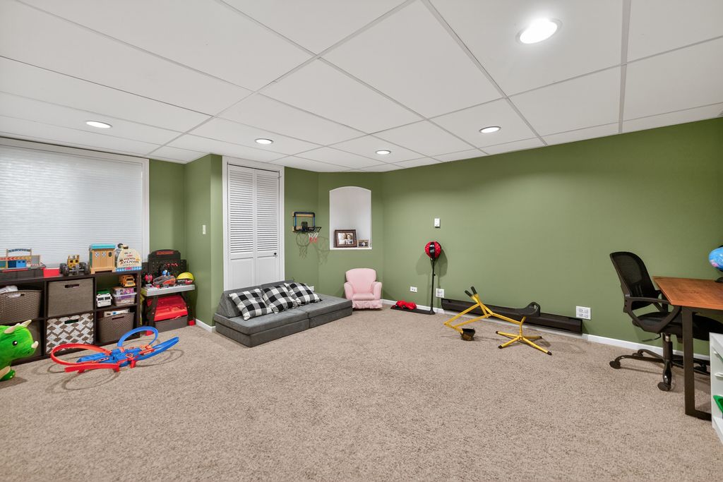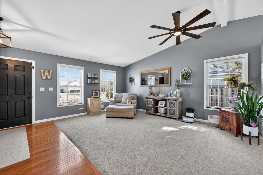 Move-in ready and loaded with new! Super spacious 3-bedroom, 2-bath quad-level modern farmhouse with separate office and over 2,400 sq ft of open-concept living space across four finished levels. The main level features a large living room and updated eat-in kitchen, stainless steel appliances, pantry, hardwood flooring, and new sliders. Upstairs offers three generous bedrooms and an updated full bath. The master bedroom has a walk-in closet. The English basement includes a sizeable family room, separate office or potential 4th bedroom with French doors, and another updated full bath. The finished lower level provides a large rec room and excellent storage space. Tons of NEW including fresh paint, new carpeting, updated lighting, newer appliances, newer mechanicals, and numerous recent improvements throughout. Step outside to a fully fenced backyard with an expansive deck and pergola, playset, trampoline, and sandbox all set on a spacious lot perfect for kids, pets, and entertaining. Low taxes. Prime location across from Northwestern Medicine Huntley Hospital and close to bike trails, the library, Huntley Square, shopping, dining, and top-rated Huntley schools. Truly nothing to do but move in!