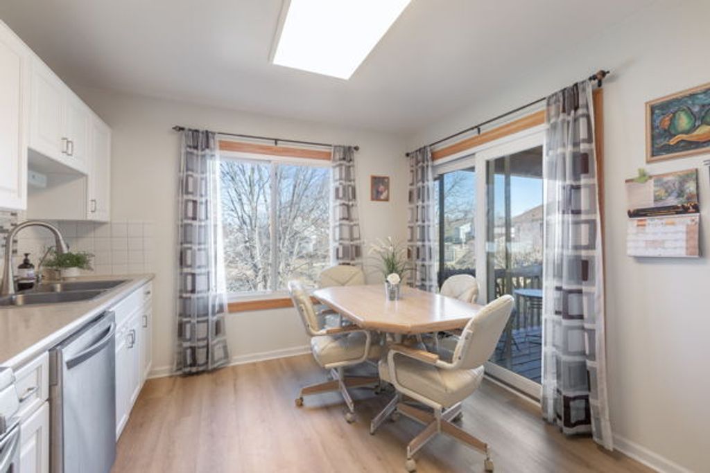 Come and get it! This Deerpath home won't last long. Large Cypress model with 4 bedrooms and 3 full baths. One bedroom and bath is on the lower level. All the expensive items have been replaced. Roof & gutters (1 year old) siding, furnace and air & windows that keep the home toasty warm! Great open floor plan. Separate dining room. Eat in kitchen with a deck. Recessed lighting throughout. Fenced yard. Heated garage. Laminate flooring throughout. Large primary with full bath and 2 closets. Situated by many parks, walk to schools, library, aquatic park and so much more. Come make this your home. Very sought after subdivision.