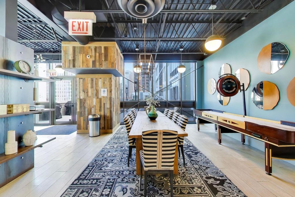 Meticulously maintained Fulton Market 1bed/1bath with HEATED GARAGE PARKING INCLUDED. Bright & sunny East facing unit overlooking Desplaines St (not an interior unit). The gracious layout features a welcoming front hallway with plenty of closet/mudroom space. Open concept living & dining space with all hardwood floors, high ceilings & a wall of windows and sliders that lead you directly to the private balcony. Fully equipped kitchen with quartz countertops, glass mosaic tile backsplash, and plenty of cabinet storage. Nicely appointed full bath & in-unit W/D. Large primary bedroom with tons of light and great closet space. This unit has been lived in by an original owner and this is the first time it has hit the market -- the pride of ownership really shows. Building amenities include a fitness center, gorgeous brand new rooftop terrace with lush garden, grills, fire pit & outdoor furniture. Also located on the rooftop level is a party room, business center, full kitchen, shuffleboard table, lounge seating & TVs. The building sits on a quiet street, just steps away from the top restaurants, bars, and grocery stores in Fulton Market, West Loop, River West, and the Loop. INVESTOR FRIENDLY building - no rental cap. Pet friendly. Deeded parking space and storage unit included in price. Don't miss!