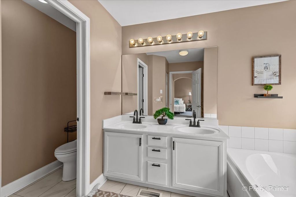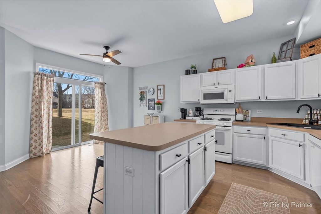 Welcome home to this beautifully maintained 2-bedroom, 2.5-bath, two-story townhouse offering 1,544 square feet of thoughtfully designed living space and an ideal blend of comfort and functionality. Step inside to a sun-filled main level featuring abundant natural light and a spacious living room anchored by a cozy fireplace - perfect for relaxing evenings or entertaining guests. A separate dining room provides the ideal setting for hosting dinner parties or holiday gatherings, while the kitchen is designed for both everyday living and entertaining, complete with a center island, ample cabinetry, and generous counter space. Upstairs, you'll find two oversized bedrooms, each offering exceptional space and comfort. The primary suite features a private bath and ample closet space, while the additional bedroom is equally spacious and conveniently located near the second full bathroom. A main-level powder room adds convenience for guests. Enjoy outdoor living in your private, gated front courtyard - a rare and inviting space perfect for morning coffee, grilling, or creating your own outdoor retreat. The attached 2-car garage provides added convenience and storage. With its spacious layout, natural light throughout, and desirable features, this townhouse offers low-maintenance living without sacrificing space or style.