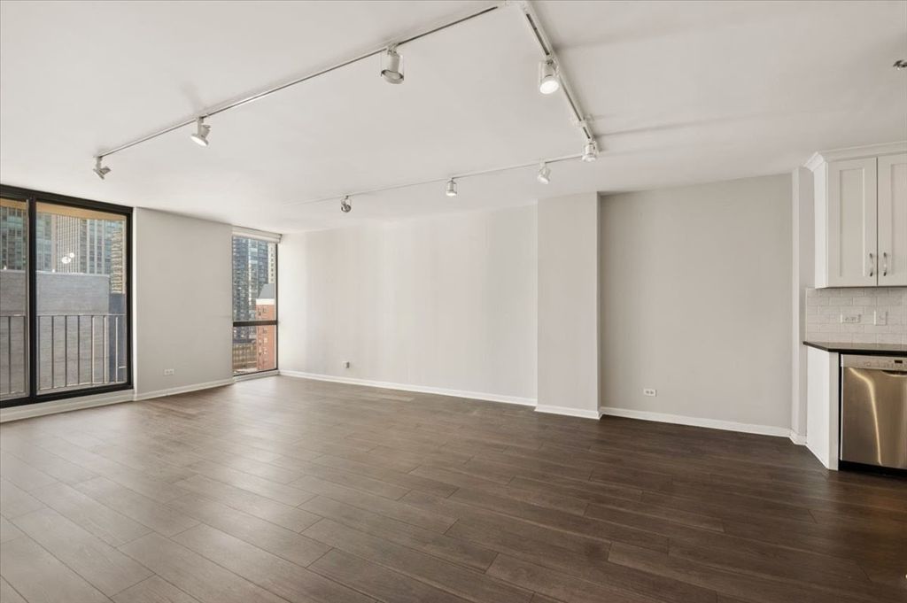 Stunningly updated condo in the heart of River North! This beautifully renovated 1 bed / 1 bath home features newer floors throughout, floor-to-ceiling windows, and a private balcony with city views. The updated kitchen showcases stainless steel appliances and modern countertops, and opens to a spacious living and dining area. There's ample room for a full dining setup and comfortable seating. The generously sized bedroom offers excellent closet space and great natural light. Truly move-in ready, this unit offers comfort, style, and value in a no-rental-cap building. Enjoy full access to premier amenities including 24-hour door staff, an exercise room, sun deck, sauna, hospitality room, laundry facilities, bike room, receiving room, on-site engineer and management, and an in-building convenience store. Assessments include heat, A/C, water, gas, and cable. Private storage locker and prime garage parking included. Experience the best of city living just steps from dining, shopping, nightlife, and public transportation.