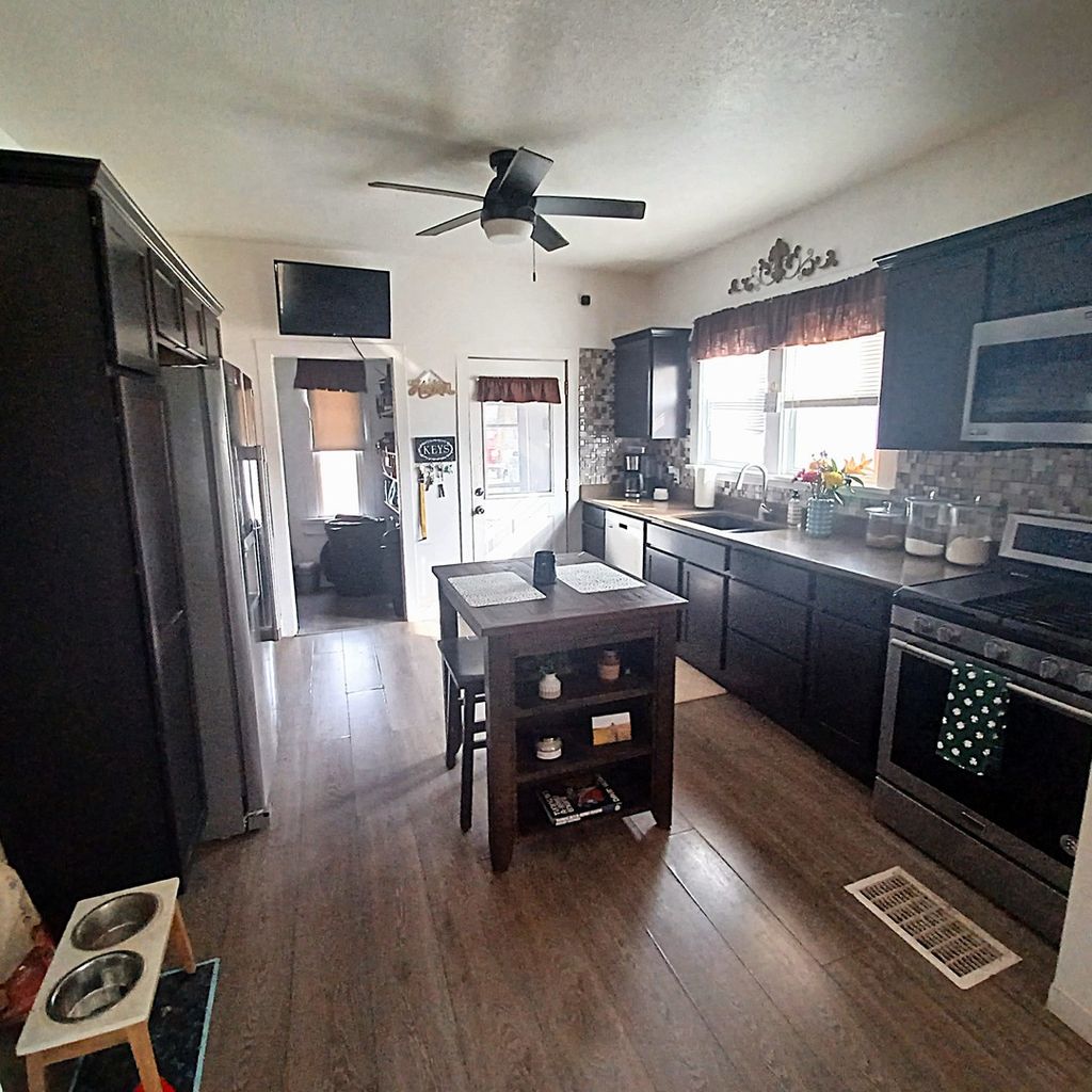If you are looking for a home with an additional building for mechanical work, mancave or storage......you don't want to miss this cute 3 bedroom, 1 bath home with a chain link fenced back yard, small rear patio and a 1 car garage plus an additional rear parcel 25-04-201-017, with alley access that has a 28X48 Steel Building with 6 inch concrete slab, insulation, separate 200 amp electric service with fifteen 110 outlets and two 220 outlets, ceiling fans, a wood burner and an 8X15 office. This bldg. has a separate electric service & the lot size is 67X160. The car lift will stay if buyer would like it to stay. The main floor of the home features a remodeled eat-in kitchen with modern wood cabinetry and counters, dishwasher, stove, refrigerator & microwave, pantry, living room, main floor bedroom, full updated bath with ceramic tiled shower, vanity with single bowl sink & stool plus the laundry area & a finished enclosed porch with coat closet. The second-floor features 2 bedrooms both with walk in closets. Weather permitting, a new roof with tear off will be installed before closing or a roofing allowance will be given at closing. 24-hour notice required for showings.