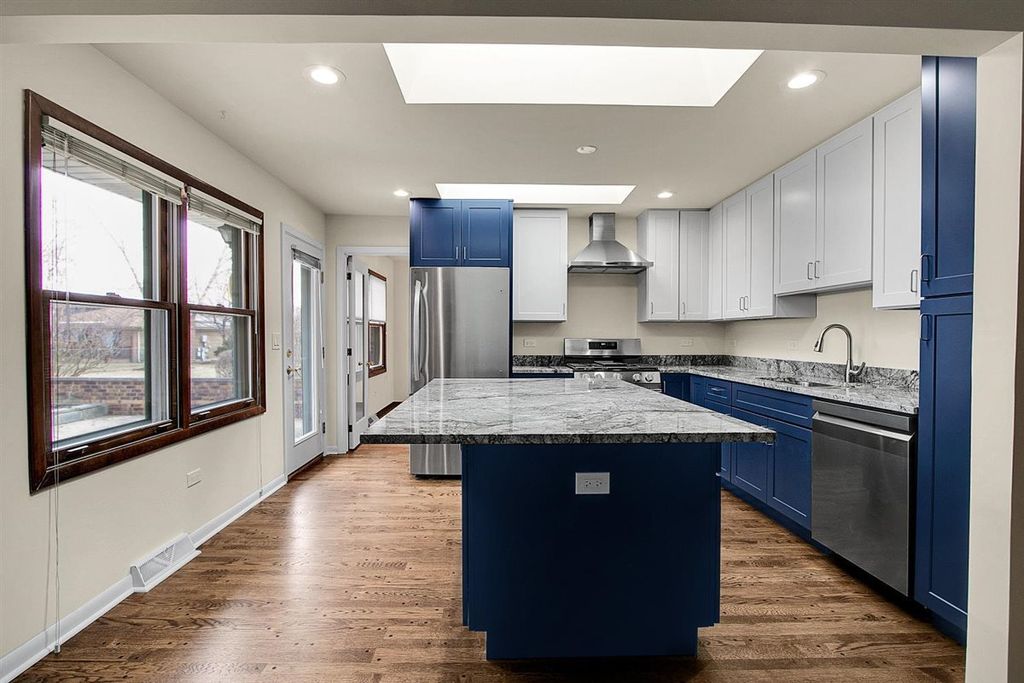 Ideally located in the Virginia Lake subdivision of Palatine, this expansive all brick Ranch is waiting for you and your family to enjoy 1800SF (appx) of living space. As you enter the foyer, you'll be stepping into the family room and kitchen (both recently gutted). You'll immediately notice the new kitchen upgrades with custom cabinetry, granite counters, island, stainless steel appliances, recessed lights, gorgeous wood flooring, 2 skylights, and tons of natural light! Spacious family room features a striking stone fireplace, sliding doors overlooking the huge outdoor patio, beautiful wood floors, and new recessed lighting. Adjacent to the kitchen is the dining and living room areas with hardwood floors throughout. This floorplan is perfect for casual or formal gatherings, dinners, and entertaining!! The 3 bedrooms are all generous sizes with great closet space. The primary bedroom includes a full bath with a walk-in closet! Main level laundry room, so no lugging of clothes up and down stairs! Very spacious lower level with all kinds of possibilities and expansion ideas. Walls are finished and recently painted, upgraded elec panel box, plus additional storage and utility rooms, and separate crawl space. NOTE: Additional home generator also included!!! 2 car attached garage with more storage. Large backyard waiting for your ideas. *Lot SF 12,452. *** Close to Schools, Sycamore Park, Palatine Bike trails, Shops, etc. You're only minutes from Route 53 for easy commutes!!