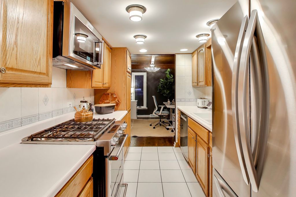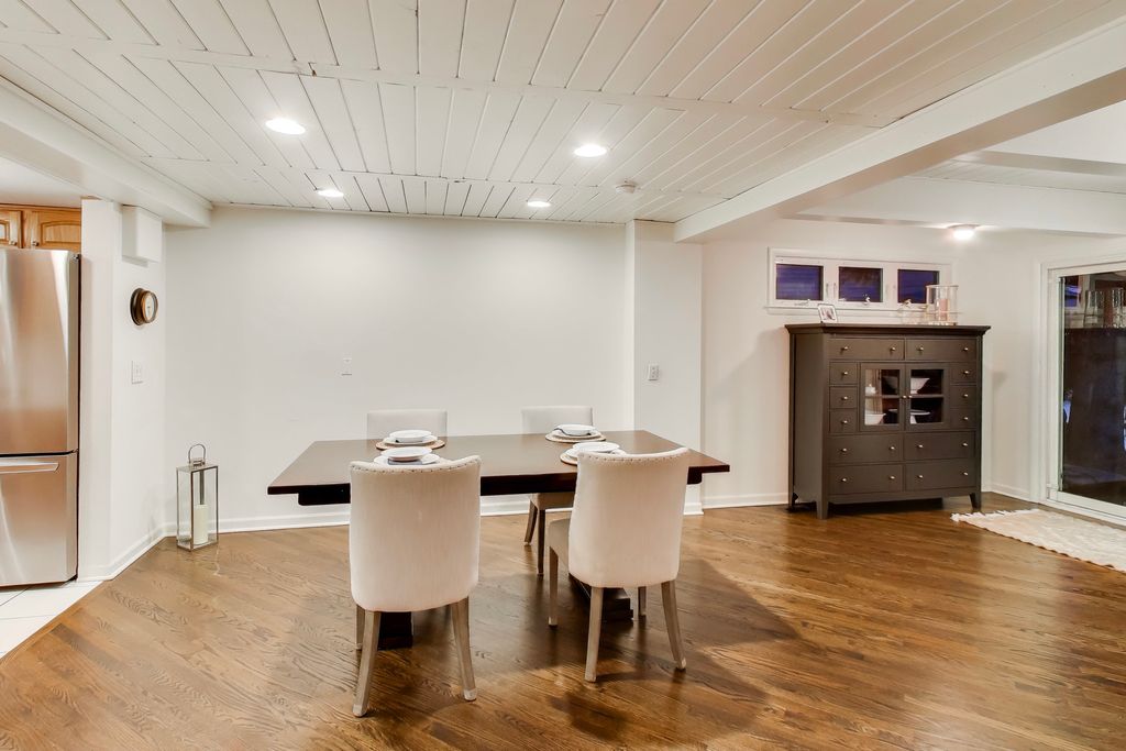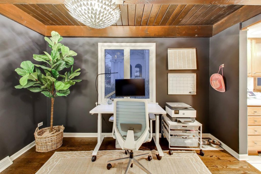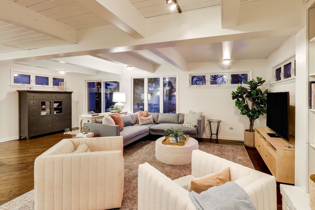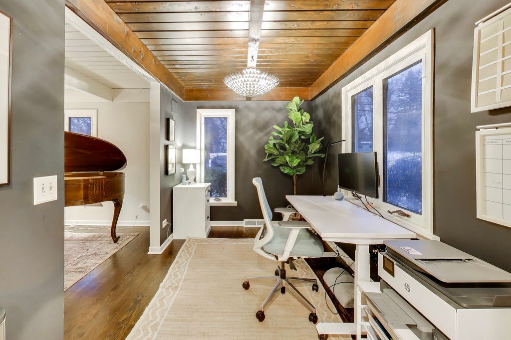 Truly UPTOWN! Mid-century meets this wooded retreat. Amenities include a primary en suite, a spacious family room with a fireplace, a first floor office, big bedrooms and a full basement. There's a side drive to a 2 1/2 car detached garage. Remember the carport can double as a roof garden and a covered parking and it's the perfect grocery drop spot.