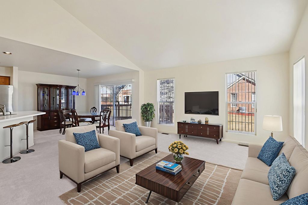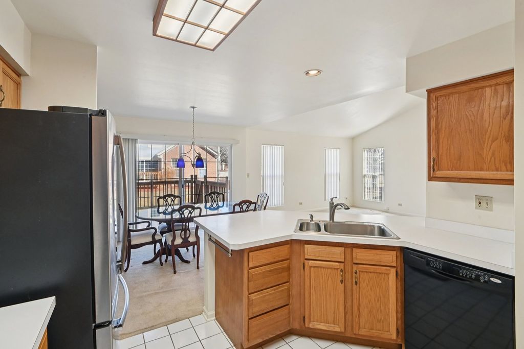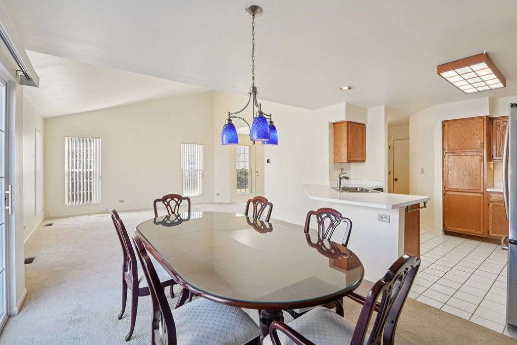 Welcome to 76D Ione Dr, a 3-bedroom, 2.5-bath end unit townhome in the desirable Fox Hollow subdivision. Situated on a quiet cul-de-sac, the covered front porch welcomes you to the main level, which features a bright and open layout with a generous living room and a dedicated dining room. From the dining room, you seamlessly enter a well-appointed kitchen, equipped with ample cabinets, counter space and a breakfast bar. Just off the dining room, through the sliding glass door, you will find the newer composite deck, perfect for entertaining or relaxing. Around the corner, from the living room, you will find a half bath and entryway closet. Upstairs, you'll find a spacious primary suite complete with vaulted ceilings, a walk-in closet and private full bathroom, which features a double vanity. Adjacent to the primary suite, you'll find two sizeable bedrooms, accompanied by a second full bath. This second floor layout provides plenty of space for family, guests, or an at home office. This home includes a huge unfinished full basement with a dedicated laundry room. This unfinished basement offers endless possibilities for future finishing or much needed storage. Complete with a 2-car garage, key pad entry and a smart garage door opener, this townhome delivers space, functionality, and comfort in desirable South Elgin. Conveniently located off of the Randall Rd. corridor and close to the Fox River trail bike bath. Don't miss this opportunity-schedule your showing today!
