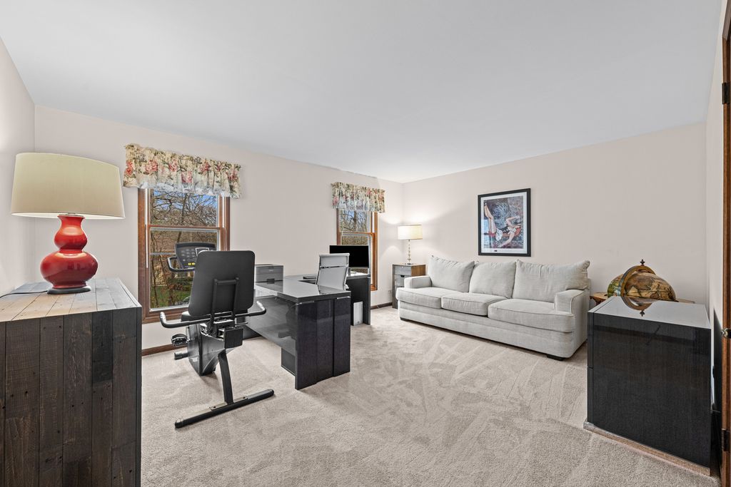 Located on one of Lincolnshire's most sought-after private, tree-lined streets in award-winning Stevenson & Lincolnshire school districts, this beautifully maintained 5-bedroom brick and cedar home offers timeless curb appeal situated on a half-acre wooded lot. A brick paver-lined driveway and walkway lead to a welcoming front porch, setting the stage for the sophisticated interior. Step inside to a substantial foyer featuring hardwood floors. The main level showcases thoughtfully designed living spaces with oversized rooms and fresh neutral paint. Dining room connects seamlessly to the chef's kitchen, making entertaining effortless. The sun filled kitchen is a standout with maple cabinetry, granite countertops, and high-end stainless-steel Viking appliances, opening to a spacious eating area and an inviting family room with a striking floor-to-ceiling brick fireplace and serene backyard views. On the first floor you will also find a private office (or optional bedroom), along with an oversized laundry/mudroom for everyday convenience. Generous room sizes and abundant storage enhance the home's comfort and functionality. The newly carpeted second level features 5 spacious bedrooms providing lots of room for everyone in your family. The primary suite features a dressing area, private shower, and multiple walk-in closets. An extra-large second bedroom also includes a walk-in closet, while the remaining 3 large bedrooms offer ample space and storage. A full bath with double sinks and linen closet completes the second floor. The large, finished basement adds even more living space, perfect for a recreation room, home gym and media area, along with extensive storage options. Outdoors, enjoy a large, peaceful backyard retreat with mature trees and a large custom refreshed brick paver patio-ideal for relaxing, entertaining, or play. Combining space, style, and an exceptional location, this home delivers the perfect setting for comfortable, family-focused living, summer barbecues, and evening gatherings.
