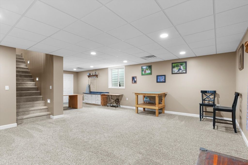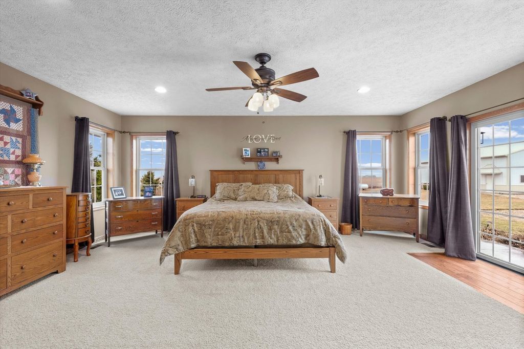 Welcome to country living at its finest in the highly sought-after GCMS School District! Situated on 1.29 acres, this beautifully updated ranch home offers space, functionality, and thoughtful design throughout. With 4 bedrooms and 3 full bathrooms- including two private master suites with their own full baths - this home provides flexibility for guests, multi-generational living, or simply extra comfort. From the moment you walk through the front door, you'll appreciate the detailed woodwork and custom cabinetry featured in the entry and mudroom area, offering both style and practical storage. The dining area overlooks the inviting living room where a cozy fireplace and added windows fill the space with natural light, creating a warm and welcoming gathering place. The primary suite is truly a retreat, complete with private doors leading to the patio, and a spacious bathroom featuring dual vanities, a walk-in shower, and a relaxing jacuzzi tub. Downstairs, the finished basement provides endless possibilities for additional living space, recreation, or entertainment, and includes an egress window that allows the option to easily add another bedroom if desired. An additional unfinished basement area provides excellent storage. Outside, the property is equally impressive with both attached and detached heated garages. The standout feature is the 42x62 outbuilding, complete with concrete floors and drain, heat, office space, and a full bathroom, with the office area also heated and cooled - perfect for hobbies, business use, or additional workspace. With a new roof in 2024, numerous updates throughout the years, and meticulous care evident in every detail, this property is truly move-in ready. If you've been dreaming of country living with modern comforts and incredible outbuilding space, this property delivers. Every feature of this home has been thoughtfully designed and well maintained. Welcome home to your peaceful retreat.