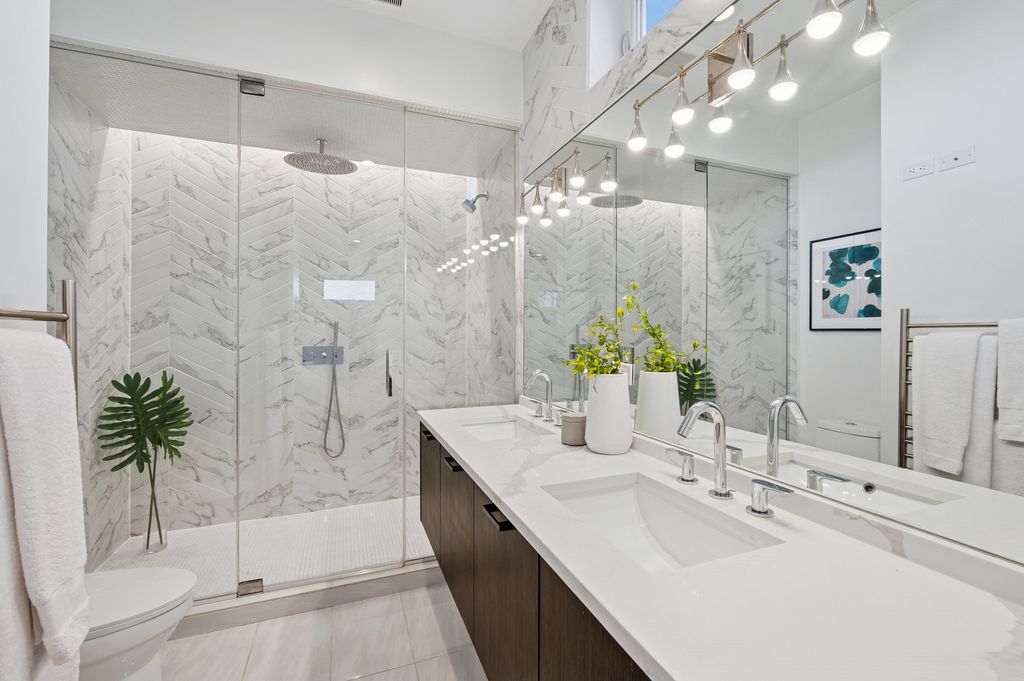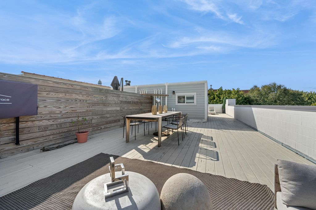 Welcome home! Fall in love with this modern Bucktown penthouse by award-winning Halcyon Development. Built in 2020, this wide, contemporary home features soaring ceilings, grey-stained oak floors, and a covered front terrace. The open layout showcases a stunning chef's kitchen with a massive quartz island, custom high-gloss cabinetry, herringbone backsplash, and premium appliances - perfect for entertaining. Floor-to-ceiling windows with unobstructed north views fill the home with natural light. The serene primary suite offers a walk-in closet and spa-like bath with heated floors, while the second bedroom provides flexible space for guests, a nursery or an office. Upstairs, a bonus room with beverage fridge leads to your private rooftop oasis with skyline views - ideal for relaxing or hosting under the city lights. Built with triple-pane windows, superior insulation, and smart home upgrades, this residence blends quality construction with modern elegance. Garage parking included. Prime Bucktown location close to the best dining, parks, and The 606!
