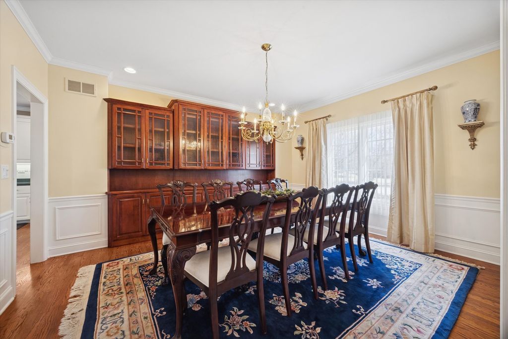 Step into this stunning brick home where timeless design meets a light-filled interior. Built for easy living, this home features a sought-after first-floor primary suite and an expansive open floor plan that is "flooded with natural light" thanks to walls of windows and high ceilings. The great room with its dramatic gas fireplace and built-in wet bar serves as the perfect hub for family lounging and entertaining. The pretty dining room also has a custom, built-in cabinet, ideal for extra storage and display. The large open kitchen has an island, peninsula and work desk for optimal work space and flow. The first level also offers a large office, powder room and nice size laundry room right off the 3-car garage. Upstairs features 3 additional bedrooms with great closet space and 2 full baths. The roomy basement is partially finished with a nice section of unfinished area available for a work space and storage. A massive rear deck and large yard expand your living space outdoors, wonderful for al-fresco dining or hosting large summer gatherings. Roof new in 2020. Majority of kitchen appliances newer. Interior of garage recently painted. Home has been meticulously maintained.