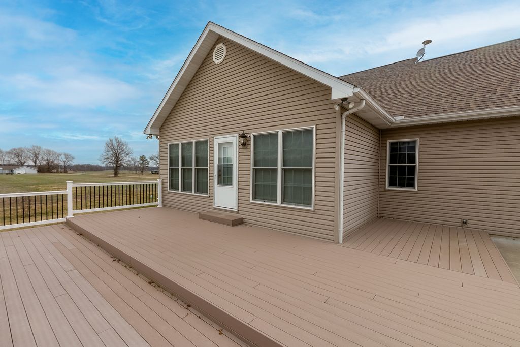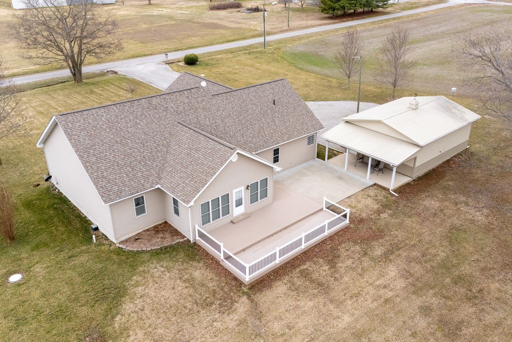 Custom built 3BR, 2.5BA home on 7.32 acres. Built with 2x6 construction and geothermal heating with central cooling for year-round efficiency. Features custom hardwood flooring, spacious kitchen with custom cabinets and double oven, and sitting room with large windows overlooking the property and a large deck. Newer roof, leaf filter gutters, and central vacuum system. Two outbuildings including a 24x30 building. Mature pecan and walnut trees. Great combination of quality construction, efficiency, and acreage.
