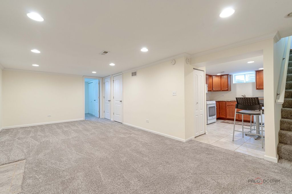 MOVE-IN READY RANCH WITH FINISHED BASEMENT, TWO KITCHENS, AND A FULLY FENCED BACKYARD IN FAIRHAVEN SUBDIVISION! This well-maintained 3-bedroom, 2-bath ranch home offers classic design, functional living space, and modern updates today's buyers want, all in a convenient location near top-rated Carmel Catholic and Mundelein High School, Fremont Public Library, Barefoot Bay Waterpark, local parks, METRA, shopping, and dining. Updates you are sure to love include a new roof with gutter guards (2023), New A/C (2023), new sump pump and battery backup (2024/2025), and new carpeting (2024). Head inside and be greeted by a spacious living and dining room combo featuring refinished hardwood flooring, crown molding, and large windows that fill the home with warmth and natural light. Next, the kitchen is perfect for everyday living and entertaining, with ample cabinetry including elegant crowned uppers, a wall of cabinets offering a generous pantry for maximum storage for all your kitchen essentials, granite countertops, stainless steel appliances, and a stylish tile backsplash. An exterior door opens to the backyard, ideal for summer BBQs, outdoor entertaining, pets, or simply enjoying your private outdoor space. Ready to call it a night? Head back inside, down the hall you will find three generously sized bedrooms with abundant closet space with Elfa closet systems for organized living. A full bath completes the main level. That's not all! The finished basement adds incredible versatility and extra living space, featuring a second fully equipped kitchen, a large family room with a gas fireplace, a second full bath, a dedicated laundry room, a home office, and an exercise room; either room can easily function as a bedroom. A two-car detached garage adds convenience and extra storage. This move-in ready ranch will check all your boxes! Schedule a showing today!