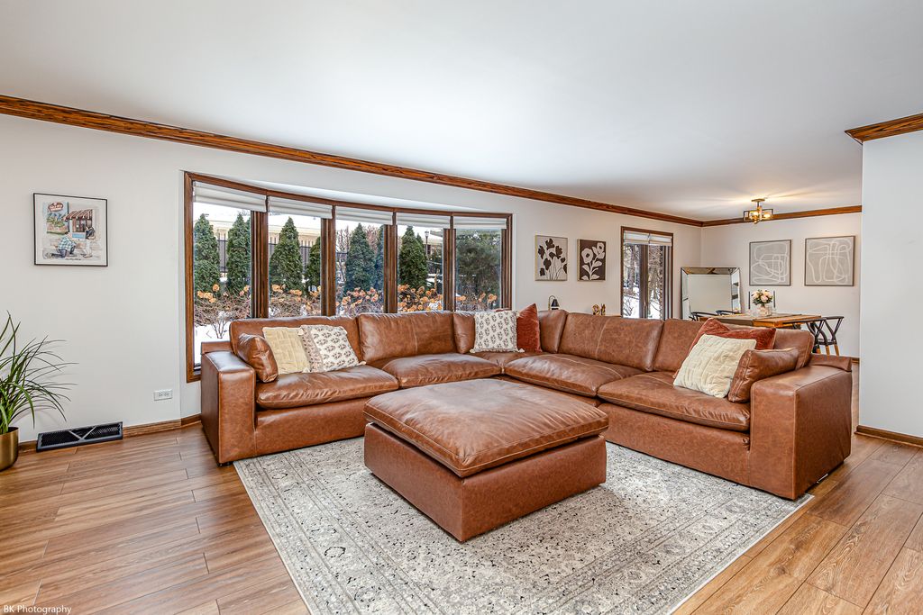 Gorgeous 4 bedroom, 2.1 custom built sprawling ranch has 4,244sf on both levels! This meticulous, Palos Heights home overlooks a serene creek, has brand new landscaping and features new luxury vinyl plank flooring, neutral paint, crown molding, a bright living room with bay window, elegant formal dining room, bright kitchen with newer stainless steel refrigerator and double oven, inviting family room with wood burning fireplace, eating area with dinette and powder room. The master bedroom has a fully renovated luxury bathroom with subway tiled walk-in shower and modern vanity. The main level has three additional large bedrooms with oversized windows, a full guest bathroom with tub/shower combination and new gray vanity. The full basement offers appx. 2,122 sf of additional living space boasting an enormous rec room with bar, office/den, storage and a utility/work room with laundry. Lovely landscaped yard with paver patio and pond. Beautiful concrete driveway leads to the attached 2.5 heated garage. Newer: front landscaping (August 2025), vinyl laminate floors, stainless steel appliances, 6 feet of PVC sewer lateral with cleanout (within 3-4 years), furnace, central air, water heater (2017), roof (2014). Whole house generator, central vac, humidifier and sprinkler system! Fantastic location near Navajo Heights Elementary school, parks, shopping, restaurants and a short distance to I-294!