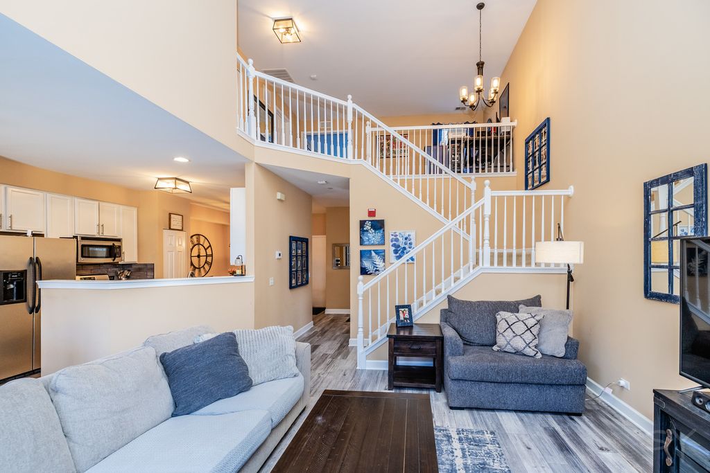 Beautiful, spacious 2 bedroom/2.5 bath with a large loft space. The kitchen features upgraded quartz countertops, GE stainless steel appliances, and an eating area. The loft overlooks a spacious living room with soaring ceilings and ample natural light. A large dining area off living room leads to your outdoor patio. Convenient 2nd floor laundry. Master bedroom has cathedral ceiling, full ensuite bathroom and walk in closet. The unit also feature an attached HEATED 2-car garage. Roof was replaced in 2024.