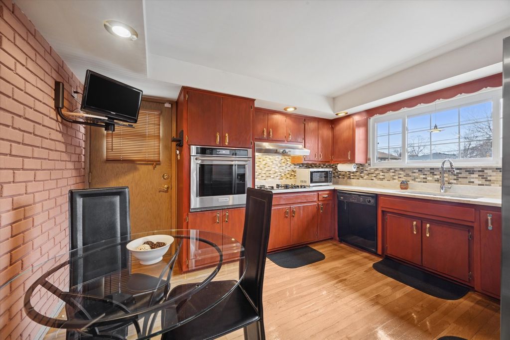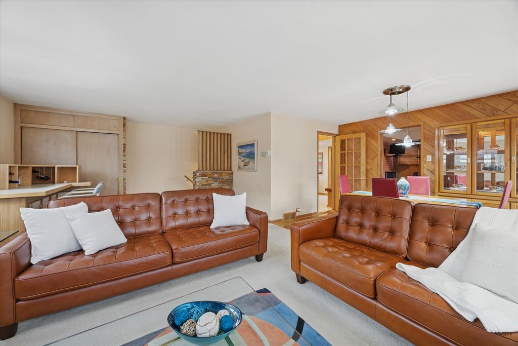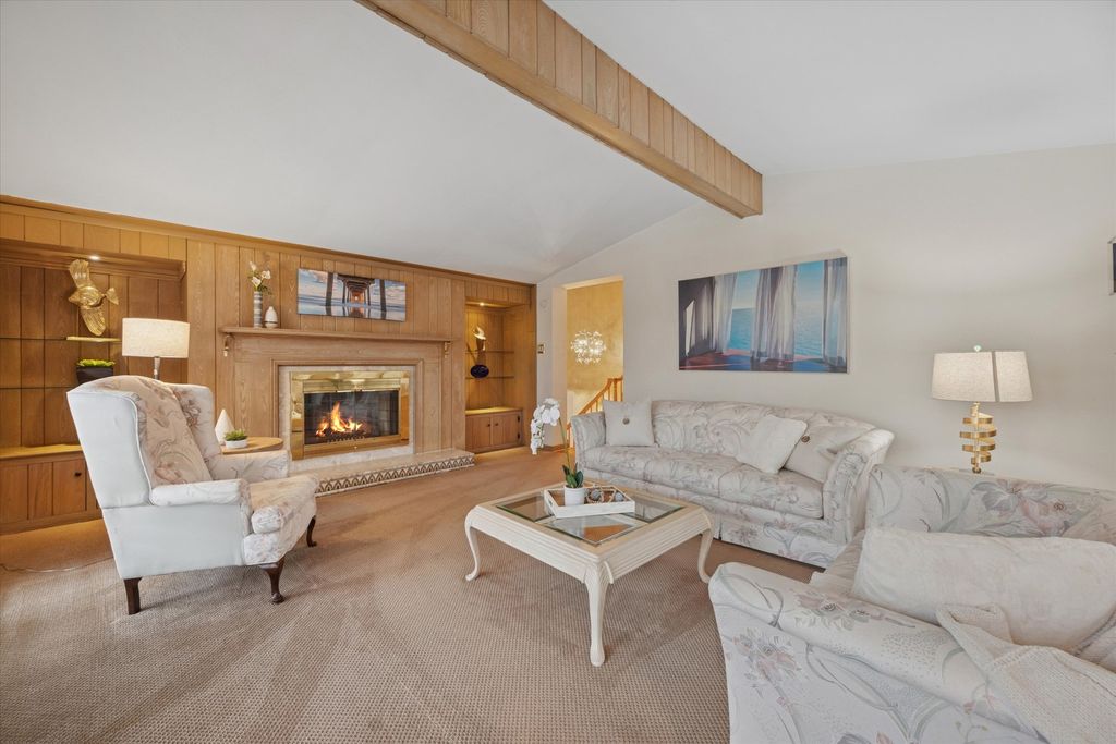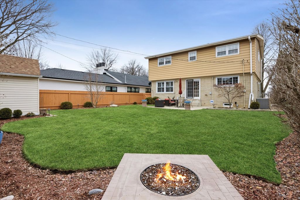 Bright, meticulously-maintained home in a fantastic La Grange location with beautiful views of the La Grange Country Club golf course. A dramatic two-story foyer welcomes you into this inviting home filled with natural light throughout, plus newer many newer light fixtures. The spacious living room is uniquely positioned at the front of the home, split between the first and second floors, and features plantation shutters, custom built-ins with glass shelving and lighting, and a wood burning fireplace. Step out to the balcony-completely rebuilt in 2023-to enjoy sweeping golf course views. The eat-in kitchen offers painted cabinetry, quartz countertops (2017), stainless steel appliances including a built-in oven (2022), and a window overlooking the semi-private backyard. French doors lead to the pristinely landscaped yard with patio and firepit area, which also features a fully powered shed on a concrete slab. The dining room has oak hardwood floors, and hardwood flooring continues beneath carpeting in the family room and throughout the second-floor bedrooms. The family room also includes a double-wide closet for additional storage. Upstairs are generously sized bedrooms, including a primary suite with private bath. Plantation shutters are featured in the living room, family room, and bedrooms. The finished basement provides excellent additional living space with a wet bar and beverage fridge, cedar closet with built-in drawers, abundant storage including under-stair space, and a laundry area with LVT flooring and convenient laundry chute. Additional highlights include an attached two-car garage with wide driveway, stone facade added in 2018 along with brick paver walkways, tear-off roof in 2014, and gutters replaced in 2016, and security system. Smart home features include a Nest smart thermostat, Arlo doorbell, cameras, and smart garage door opener. Enjoy a wonderful location within walking distance to downtown La Grange, the Metra train, grocery stores, both LTHS campuses, and nearby elementary and middle schools. You won't want to miss this one!
