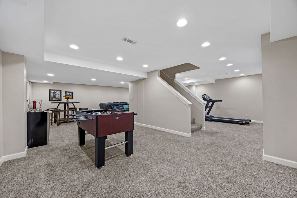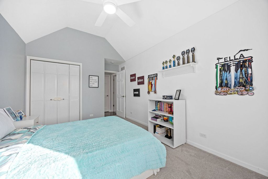 ***Multiple Offers Received, H&B due 3/23 @ 10AM.** Stunning 4 bedroom, 2.5 bathroom home offers 3,602 square feet of beautifully updated living space. This Oakhurst gem showcases an impressive blend of recent renovations and thoughtful design throughout. Main level welcomes you with a living room featuring cathedral ceilings, large windows with built-in window bench, and newer carpeting that flows seamlessly into the dining room. Dining room boasts elegant tray ceiling, chair rail, and crown molding details. The fully updated kitchen (2019) impresses with dark cabinets, light quartz countertops, peninsula, breakfast nook, newer GE oven, GE dishwasher, and LG refrigerator, plus convenient access to the backyard deck. Kitchen opens beautifully to the family room, which showcases a gas fireplace with floor-to-ceiling custom brickwork, built-ins on each side, and a wall of windows. Convenient laundry room includes washer, dryer, storage cabinets above, and port window. Half bathroom features full 2024 remodel with vanity and granite countertops. Hardwood flooring refinished in 2020 flows throughout kitchen, hall, and family room. Upstairs houses all four bedrooms with new carpeting throughout. Primary bedroom features vaulted ceilings with exposed wooden beams and walk-in closet, plus luxurious en-suite bathroom with matching vaulted ceilings, exposed wooden beam, large whirlpool tub, separate walk-in shower with full glass door, and double sink vanity. Three additional good-sized bedrooms each offer closets and share the stunning hall bathroom, fully remodeled in 2024 with double sink vanity, walk-in shower with full glass door, custom tile work from floor to ceiling, and skylight. Recently finished basement provides large recreation room with recessed lighting and carpeting, plus exceptional storage with dedicated storage room and two additional closets. Exterior features include fully fenced yard, windows and skylights replaced 2019-2021, replaced front door, recent exterior painting, professional landscaping, deck, concrete driveway, and 2 car attached garage. Enjoy Oakhurst community perks including volleyball, tennis, pickleball courts, walking trails, parks, and optional pool/clubhouse membership. Walking distance to Steck Elementary and Waubonsie Lake, with convenient access to Fox Valley Park District amenities and top-rated District 204 schools. Minutes from shopping centers, Metra stations, and major Route 88 access. Don't miss this move-in ready gem, schedule your showing today!