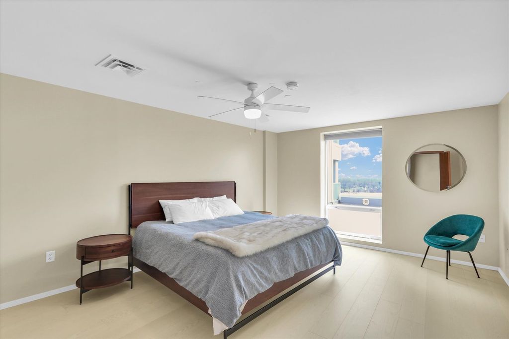 Experience the pinnacle of downtown living in this sleek, modern sanctuary located in the heart of the city. Unit 608 offers a front-row seat to the vibrant energy of Champaign, paired with the peace of mind that comes with high-end, secure-access living. This thoughtfully designed 2-bedroom, 2-bathroom residence features an open-concept layout defined by clean lines and contemporary finishes. The living area is bathed in natural light, framing breathtaking east-facing views those present Illinois sunrises over the downtown skyline. While downtown condos often trade outdoor space for location, Unit 608 offers the best of both worlds. This unit boasts a rare exterior patio, providing a private outdoor retreat that is nearly impossible to find in this building. Whether it's morning coffee or a sunset cocktail, this is your personal terrace above the city.