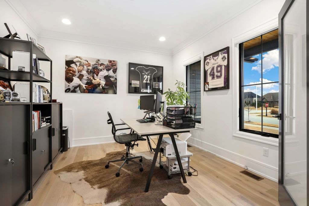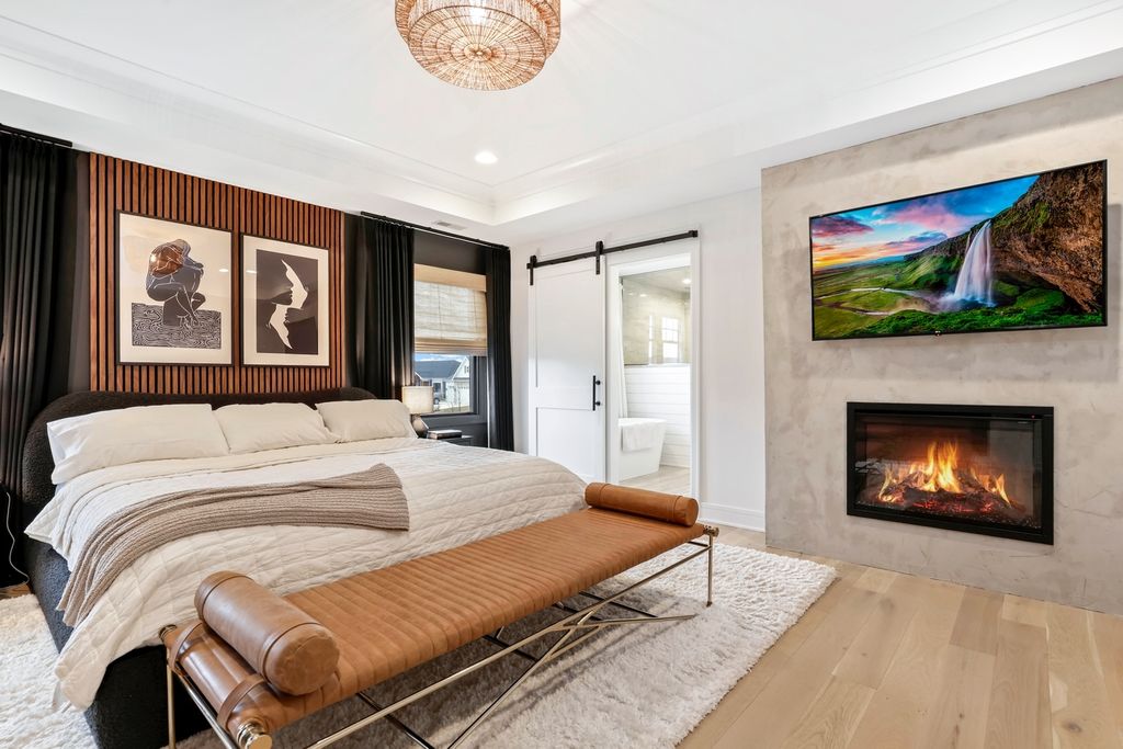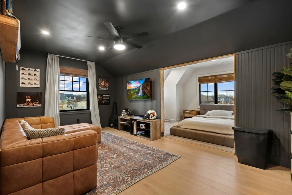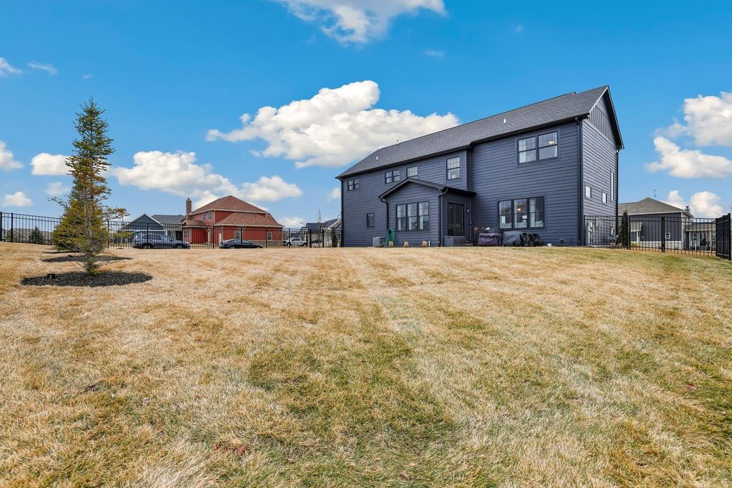 Step inside this beautifully maintained custom two-story home, proudly owned by its original owners. This spacious 4-bedroom, 4.5-bath residence welcomes you with an inviting foyer and elegant French doors that open to a private office or den-perfect for working from home. The heart of the home is the stunning kitchen, featuring high-end stainless steel appliances, an oversized side-by-side refrigerator/freezer, a large quartz island with sink and dishwasher, double ovens, a cooktop, and a built-in microwave. Rich ebony cabinetry provides abundant storage, along with upper display space for decorative touches. Just off the kitchen, you'll find a charming coffee bar with additional shelving, a convenient mudroom with double closets and garage access, and an expansive walk-in pantry ideal for storing small appliances and all your cooking essentials. The spacious dining area sits just off the kitchen, making it perfect for hosting family gatherings, and offers sliding glass doors leading to the backyard patio. The cozy family room features beautiful wood beam ceilings, a picturesque fireplace flanked by built-in bookshelves, and large windows that fill the space with natural light-creating the perfect setting for relaxing evenings at home. Upstairs, you'll find four generously sized bedrooms, each with its own en-suite bathroom and walk-in closet. The luxurious primary suite is a true retreat, highlighted by a gorgeous tray ceiling and elegant light fixture. The spa-like primary bath includes a large soaking tub, an oversized walk-in shower, and an impressive walk-in closet designed to accommodate any wardrobe. The full unfinished basement offers endless possibilities and includes a bathroom rough-in for future expansion. Notable upgrades include a fenced backyard, epoxy-coated garage floor, landscape lighting, a fireplace feature in the primary bedroom, added hardwood flooring, and beautiful custom draperies. From the moment you walk in, you'll know this is the home you've been waiting for. Located in the prestigious Preserve subdivision with the added benefit of low Indiana taxes-schedule your showing today!