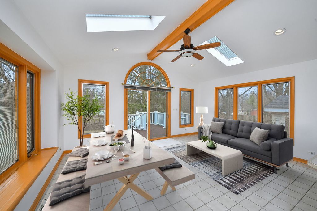 Solid Beauty Nestled in this highly desirable community, The Streams of South Wheaton, served by top-rated District 200 schools is this exceptional home offering the perfect blend of comfort, style, and location-just minutes from vibrant Wheaton shopping and dining and the scenic greens of Cantigny Golf Course. Step inside to an expansive, open-concept floor plan where each room flows seamlessly into the next, creating an inviting and airy atmosphere. Soaring vaulted ceilings and rich hardwood floors enhance the sense of space and elegance. Designed for both entertaining and everyday living, the cozy, moody media room is a true showstopper-complete with 7.2 surround sound, subwoofer, projector, and a 90-inch screen for an immersive home theater experience. The large, updated kitchen is drenched in natural light from skylights and surrounding windows, offering both beauty and functionality. Upstairs, you'll find four spacious bedrooms, each with generous closet space. The Huge owner's suite features high ceilings and a beautifully updated bath with a gentleman's-height vanity for added comfort. Brand-new carpeting (2023) adds a fresh touch to all bedrooms. Outdoor living is equally impressive. Enjoy two convenient access points to your private backyard oasis-step out from the kitchen's sliding glass doors onto the maintenance-free deck, or exit through the oversized ground-level media room door to a smooth paver patio. The patio leads to a stunning six-sided gazebo, fully equipped for three-season enjoyment with windows, screens, overhead fan w/lighting, and cable. Additional outdoor highlights include a cozy fire pit, an illuminated water feature, and gentle landscape lighting thoughtfully controlled from inside the home, creating a serene and inviting atmosphere day or night. Maintenance has been top of mind for all systems. Furnace & A/C (5 years new), Tankless Water Heater, and more. listed under additional information. This is more than a home-it's a lifestyle. Come walk the land in a place to call home, and put down roots.