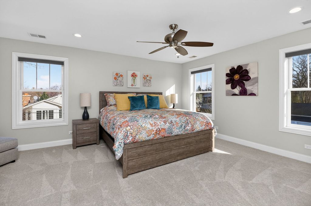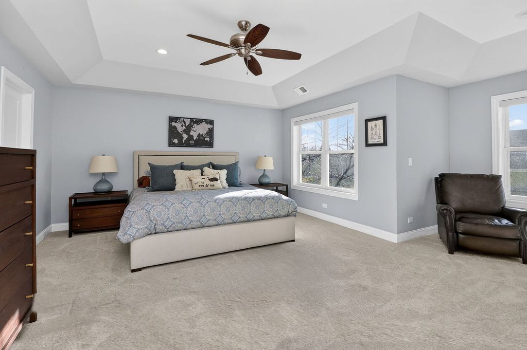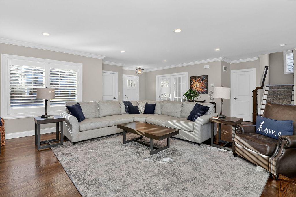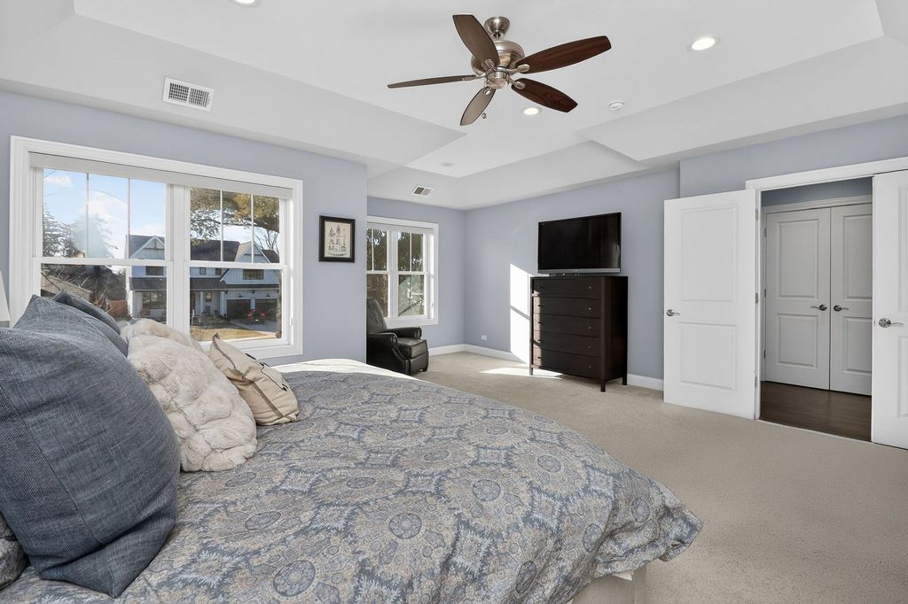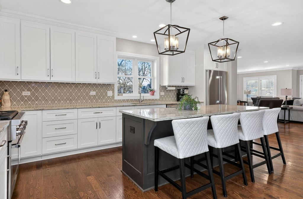 Located in the most sought-after neighborhood in Downers Grove, this beautifully upgraded 4-bedroom, 3.5-bath home offers exceptional space, style, and functionality. Step inside to a bright, open main level featuring a spacious family room with seamless sight lines into the stunning kitchen - designed for both everyday living and effortless entertaining. The kitchen showcases a large center island, newer Thermador stainless steel appliances, and a generous pantry closet. A dedicated first-floor office provides ideal flexibility for today's work-from-home lifestyle. Rich hardwood floors, crown moulding and plantation shutters throughout the main level add warmth and sophistication. Upstairs, you'll find four generously sized bedrooms and a convenient second-floor laundry room. The primary suite is a private retreat, entered through double doors and highlighted by a tray ceiling, plush carpeting, a walk-in professionally organized closet, and a luxurious bath with dual vanities, marble flooring, a standalone soaking tub, and a separate shower. An additional bedroom with en-suite bath offers excellent guest or multigenerational living options. The finished basement expands the living space with a large recreation area ideal for media, gaming, fitness, or play, plus abundant storage in the unfinished portion. Outdoor living is equally impressive, featuring multiple entertaining areas including a rear grill deck, a private "wine" deck, a spacious patio with fire pit, professionally landscaped yard, and a newer storage shed. Enjoy short walks to top-rated schools, parks, the Metra train station, and vibrant downtown Downers Grove with its shopping, dining, theater, and local amenities. A rare opportunity to own a move-in ready home in a premier location.