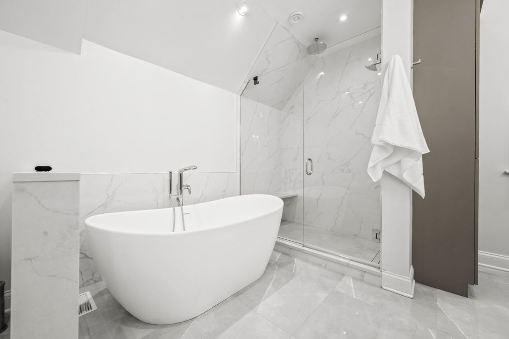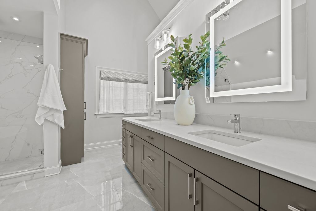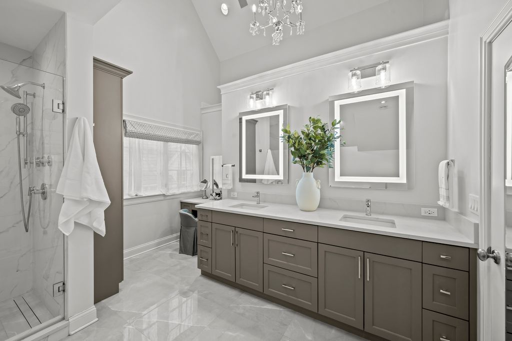 Just steps from South Park-a newly redesigned 12-acre park with endless amenities-this stunning custom home offers over 4,000 SF of exceptional craftsmanship and timeless style. A bluestone walkway, stone-and-stucco facade, and dramatic high-pitch Vermont slate roof create an unforgettable first impression, combining elegance with unmatched durability and low-maintenance luxury. Inside, an open floor plan is accented by rich hardwood floors, expansive windows with plantation shutters, elegant crown moldings, coffered ceilings, barrel and vaulted hallways, a dramatic custom staircase, and a whole-house sound system. The chef's kitchen boasts a center island, crisp white cabinetry, granite countertops, and top-of-the-line stainless steel appliances, including Sub-Zero and a 6-burner Wolf range with double ovens. The kitchen flows seamlessly into the family room anchored by a striking stone fireplace. A butler's pantry leads to the spacious dining room with leaded glass windows, while the sun-filled living room offers coffered ceilings and a limestone fireplace. A first-floor study provides a perfect home office. The serene primary suite is a true sanctuary, featuring tray ceilings, custom built-ins, a generous walk-in closet, and a newly renovated spa-like bathroom with vaulted ceilings, skylight, double vanities, an oversized glass shower, and a freestanding soaking tub. The expansive lower level includes high ceilings, a home theater, fitness room, recreation space, wine closet, and full bath. Additional highlights include a heated 3-car garage, professional landscaping, brick patio, and fully fenced, gated backyard. An unparalleled offering in a prime location-convenient to town, train, beach, parks, and top-rated schools.