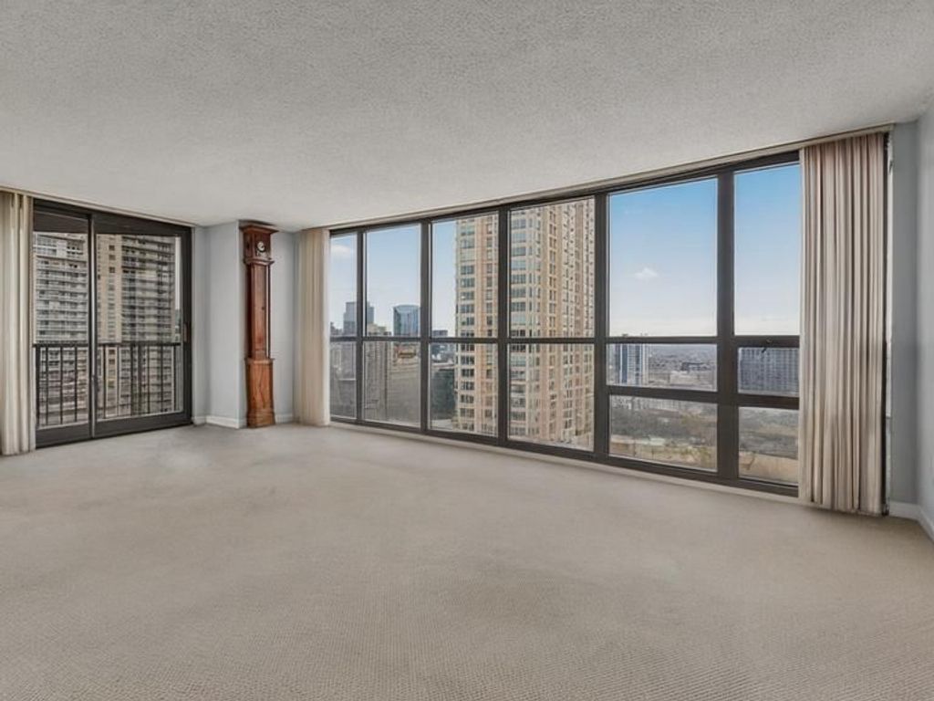 Welcome to 10 E Ontario Street, Unit 4304 - Ontario Place in the heart of River North. Enjoy spectacular high-floor city and skyline views from this 2 bed, 2 bath SW corner residence offering nearly 1,400 sq ft of open-concept living and dining space-ideal for entertaining. Floor-to-ceiling windows deliver iconic Chicago views from every room and incredible natural light. Step out to an expansive 25' balcony directly off the living room, perfect for relaxing or hosting above the city. Full-amenity building with 24-hour door staff, on-site management, fitness center, outdoor pool with sundeck and grills, business center, package receiving, and bike storage. Unbeatable location steps to the Riverwalk, Michigan Avenue, top dining, nightlife, and transit. Excellent option for investors or future owner-occupants-tenant in place through June 30, 2026. Attached parking available for purchase or rent. Washer/dryer can be added. Brand new HAVC was installed in the unit last year.