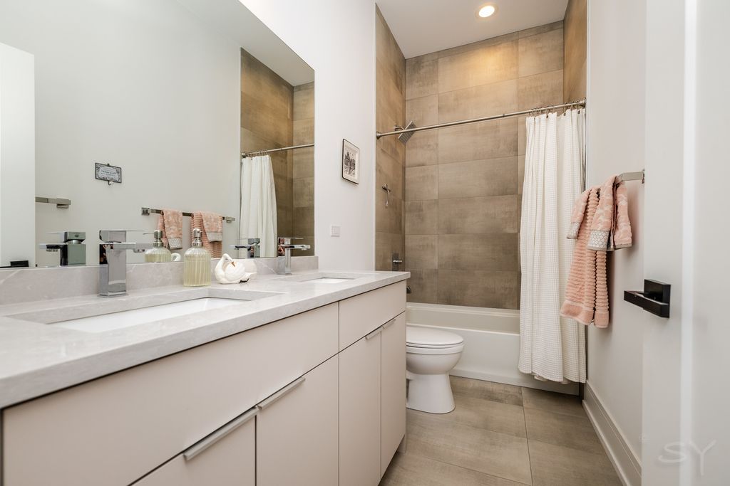 A unique Duplex-up newer construction condo in a boutique 2-unit building offering all the benefits of a top floor unit, without all the stairs! This main level open floor plan has a chef's kitchen with two toned custom cabinets, under cabinet lighting, quartz counter tops, designer tile backsplash, high-end Bosch stainless steel appliance package, all tied together with wide plank engineered wood floors and tons of windows. A primary suite with a walk in closet, spa like bath with double vanity, heated floors, great size shower, designer tiles and light fixtures. Second level features the third bed and bath with a private rooftop, as well as an open space to entertain with a second private outdoor rooftop. No detail has been overlooked; elfa closet organizers through-out, gas and water lines on the outdoor spaces, W/D closet plumbed for sink, fenced yard, 2 zone HVAC system allowing you to cool and heat each level individually. A garage parking space is included in the price. Conveniently located to the Bloomingdale Trail, public transportation and all Bucktown has to offer, including Gretel, Parsons, Middle Brow Brewing, Solomon Oath tap room, and more.
