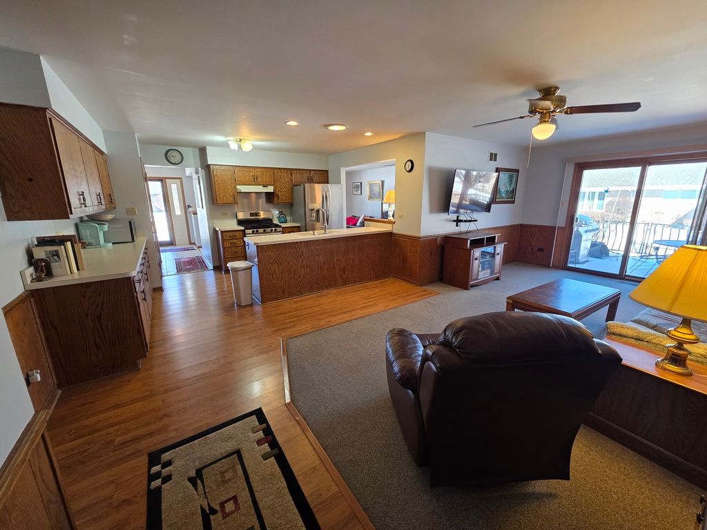 Extremely rare ranch-style condo in the highly desirable Eagle Ridge community, offering one of only a handful of true duplex units. This well-designed home features an open floor plan with two large bedrooms and two full bathrooms. The kitchen opens directly to the family room, creating an ideal space for entertaining family and friends. Enjoy serene views of the wooded courtyard from your windows-no street exposure-along with a private enclosed patio perfect for relaxing. Recent updates include a furnace and central air replaced just 4 years ago and a brand-new roof installed in October 2025. The large two-car garage provides ample storage and includes a ramp for step-free access, adding convenience and accessibility. Opportunities like this are extremely rare.
