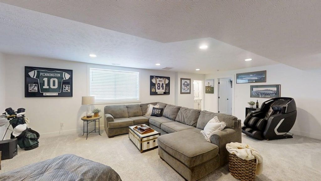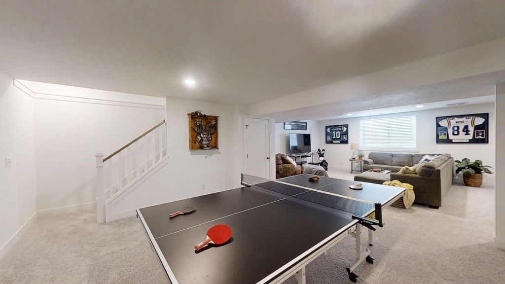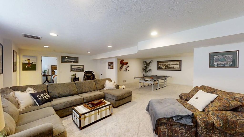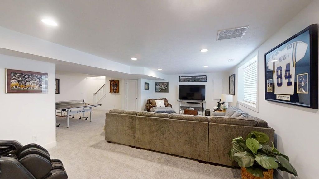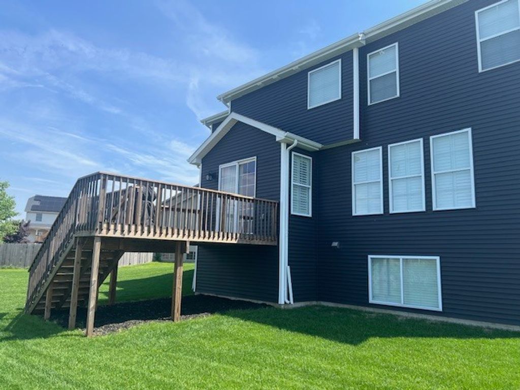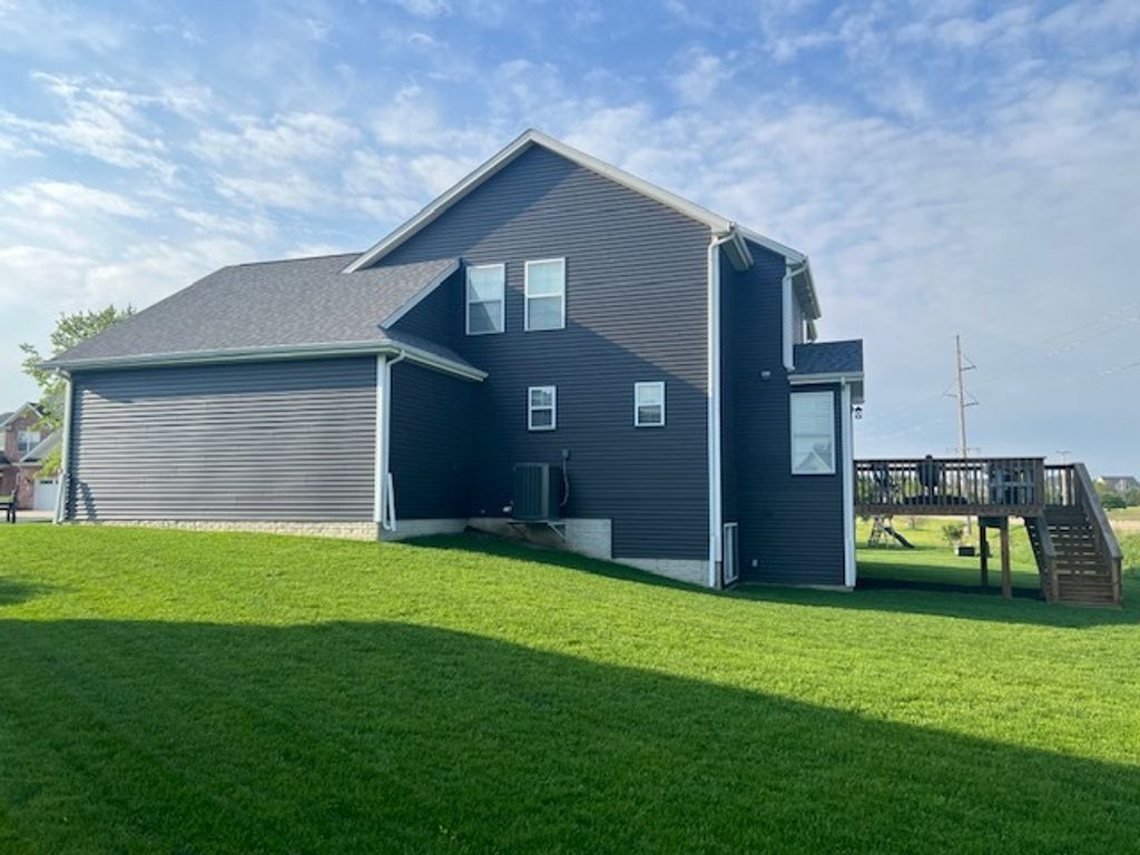 Take a look at this stunning 5 bedroom, 3.5 bath home at the end of a quiet cul-de-sac in Eagle View subdivision featuring beautiful exterior stone accents and an inviting front porch that creates the perfect first impression! Inside, a formal front dining room flows seamlessly into the open living room and kitchen, creating an ideal space for both everyday living and entertaining. The living room is filled with natural light and anchored by a cozy fireplace for added warmth and charm. The eat-in kitchen is sure to impress with a huge center island complete with sink and built-in microwave, gorgeous countertops, modern light fixtures, and a stylish tile backsplash. Just off the garage entry, you'll appreciate the convenient drop zone along with a separate laundry room featuring a utility sink. Upstairs you'll find four spacious bedrooms, including the beautiful primary suite highlighted by a unique tray ceiling, walk-in closet, and an incredible private bath with a soaking tub and separate walk-in shower. The finished basement expands your living space with a large family room, fifth bedroom, and a third full bathroom - perfect for guests or additional living space. You'll love the wood deck overlooking the backyard with no rear neighbors, offering added privacy and peaceful views. This exceptional home combines style, space, and comfort in every detail!