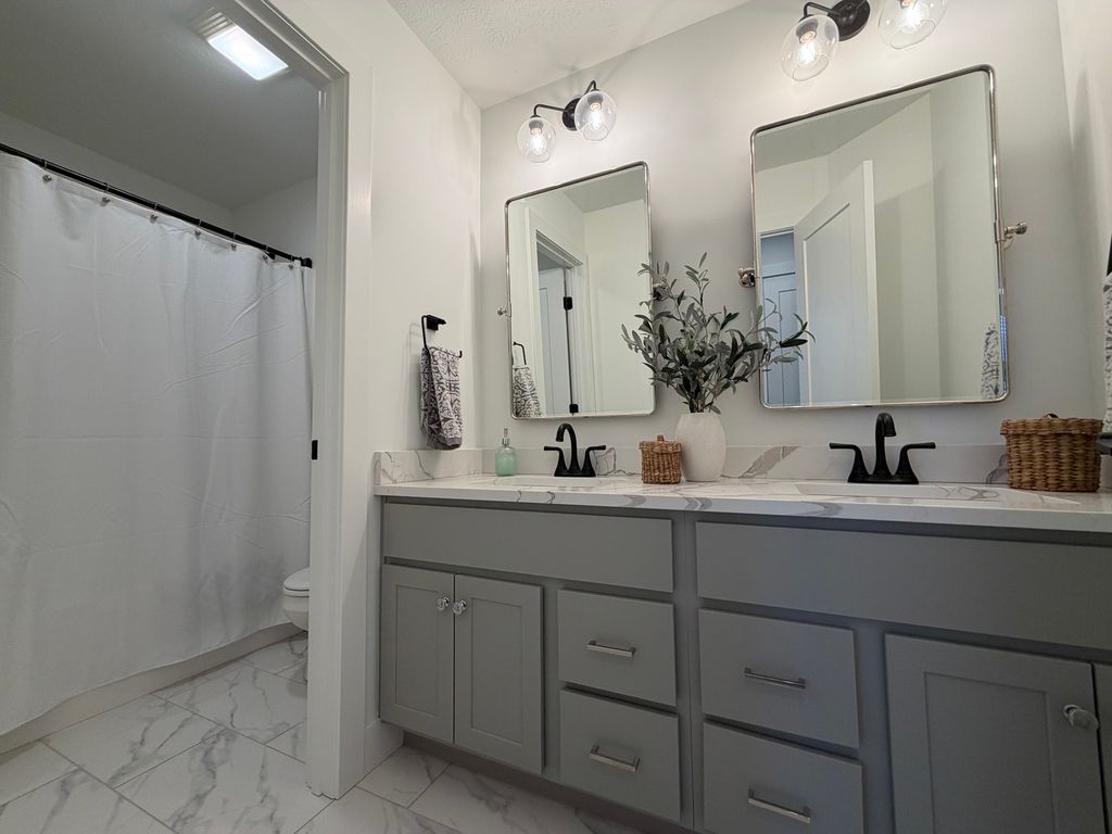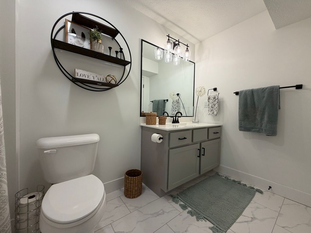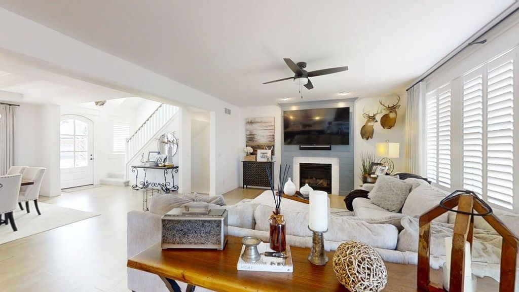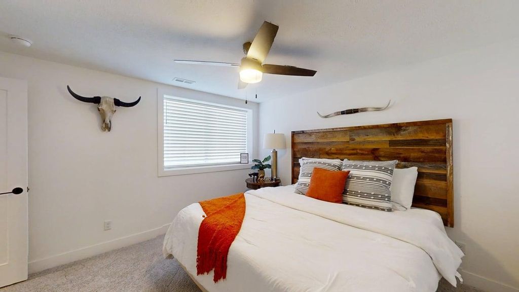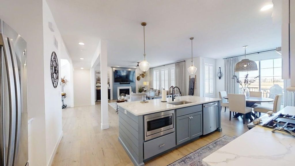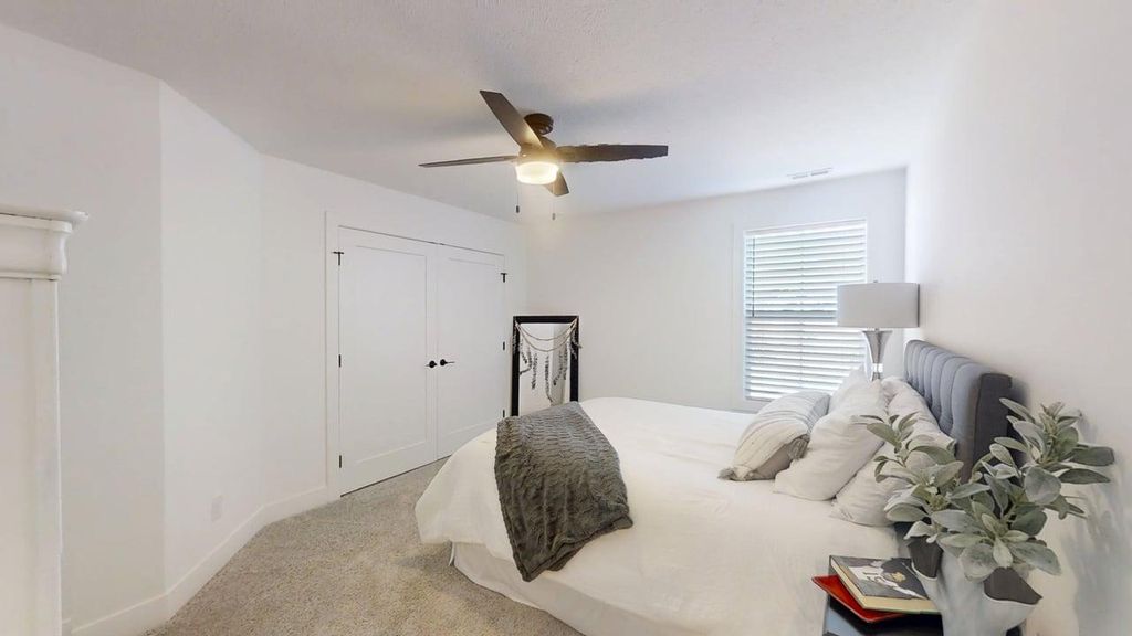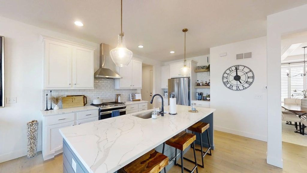 Take a look at this stunning 5 bedroom, 3.5 bath home at the end of a quiet cul-de-sac in Eagle View subdivision featuring beautiful exterior stone accents and an inviting front porch that creates the perfect first impression! Inside, a formal front dining room flows seamlessly into the open living room and kitchen, creating an ideal space for both everyday living and entertaining. The living room is filled with natural light and anchored by a cozy fireplace for added warmth and charm. The eat-in kitchen is sure to impress with a huge center island complete with sink and built-in microwave, gorgeous countertops, modern light fixtures, and a stylish tile backsplash. Just off the garage entry, you'll appreciate the convenient drop zone along with a separate laundry room featuring a utility sink. Upstairs you'll find four spacious bedrooms, including the beautiful primary suite highlighted by a unique tray ceiling, walk-in closet, and an incredible private bath with a soaking tub and separate walk-in shower. The finished basement expands your living space with a large family room, fifth bedroom, and a third full bathroom - perfect for guests or additional living space. You'll love the wood deck overlooking the backyard with no rear neighbors, offering added privacy and peaceful views. This exceptional home combines style, space, and comfort in every detail!