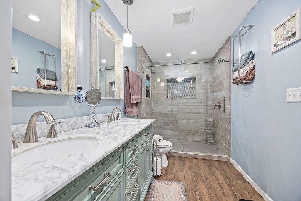 WELCOME HOME! Space, comfort, and opportunity come together at lovely home in Woodridge. With 2,100 square feet, 4 bedrooms, and 2.5 bathrooms, this home offers the room you need and the flexibility you want. The open-concept main level flows effortlessly, making it ideal for hosting, relaxing, or keeping everyone connected. A charming fireplace adds warmth and character, setting the scene for cozy nights in. The home shines where it matters most-both main bathrooms have been tastefully remodeled, offering modern finishes and a fresh feel. Upstairs bedrooms are generously sized, providing comfortable retreats for family, guests, or home office space. While some areas are ready for your personal touch, the layout and square footage provide an excellent foundation to create something truly special. Downstairs, the full unfinished basement is full of potential-imagine a rec room, extra living space, or simply abundant storage. Step outside to a fenced backyard, perfect for summer barbecues, pets, or playtime. Set in a welcoming Woodridge neighborhood, this home is the perfect blend of move-in ready essentials and value-add opportunity. Bring your vision and make THIS HOME your own.