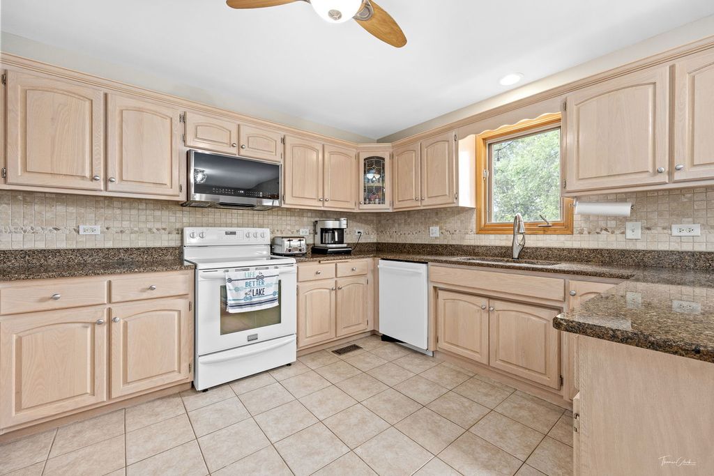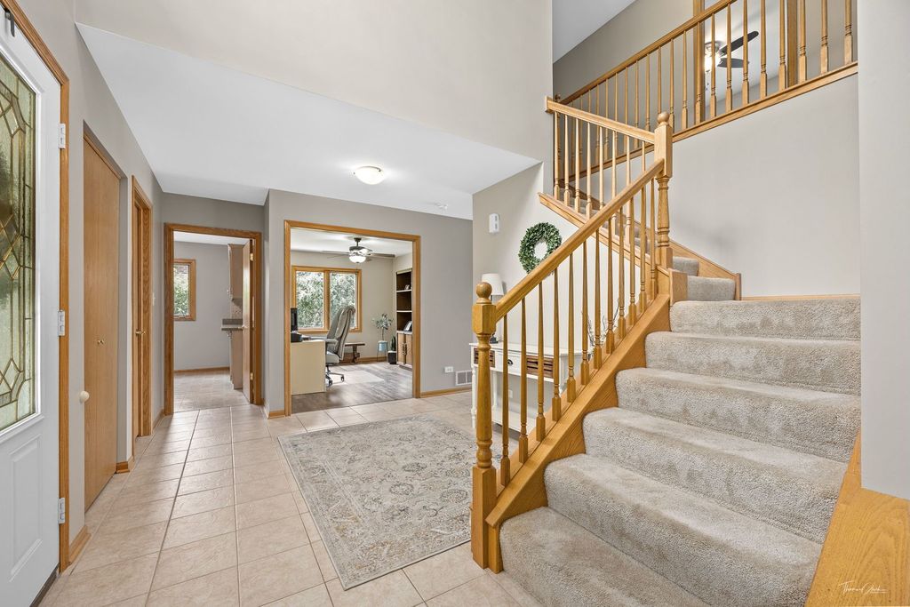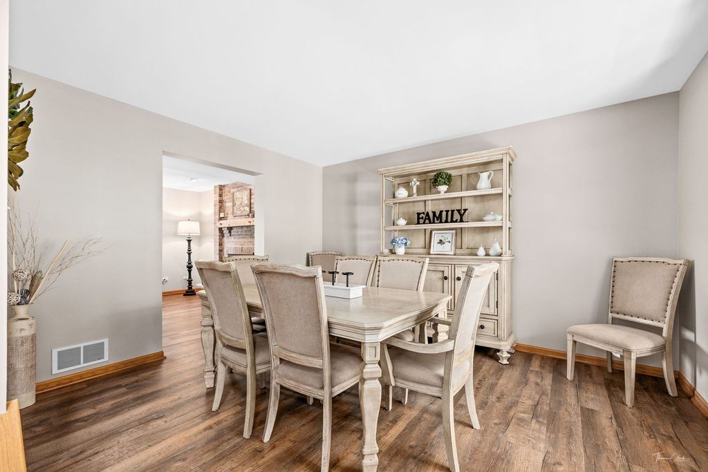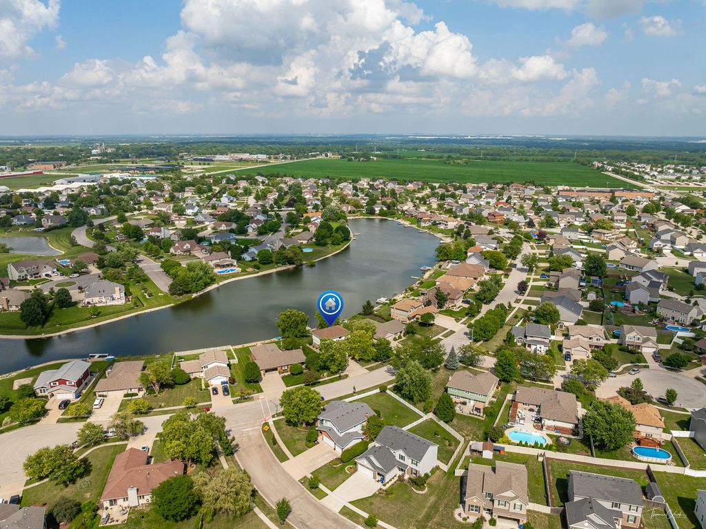 Vacation year-round in this waterfront 4-bedroom, 2-story home in Minooka. Freshly painted throughout, this home is move-in ready and offers peaceful water views and direct access to your own 17x13 composite dock with stone staircase. The inviting front porch welcomes you into a spacious foyer with separate living and dining rooms. The eat-in kitchen features granite countertops, abundant cabinetry with uplighting, breakfast counter, and all appliances, and opens to the family room with fireplace. First-floor laundry includes washer and dryer. Upstairs, you'll find four bedrooms, including a spacious primary suite with water views, huge walk-in closet, and bathroom with double sinks and shower. The finished basement provides additional living space and features new luxury vinyl flooring, a half bath, and flexible space for recreation, work, or entertaining. Enjoy the backyard with direct water access, fishing, and outdoor relaxation from your own property. You will receive 2 deeds one for the home and 2nd for the water. Located in Minooka School District with convenient access to schools, shopping, dining, and major roadways.