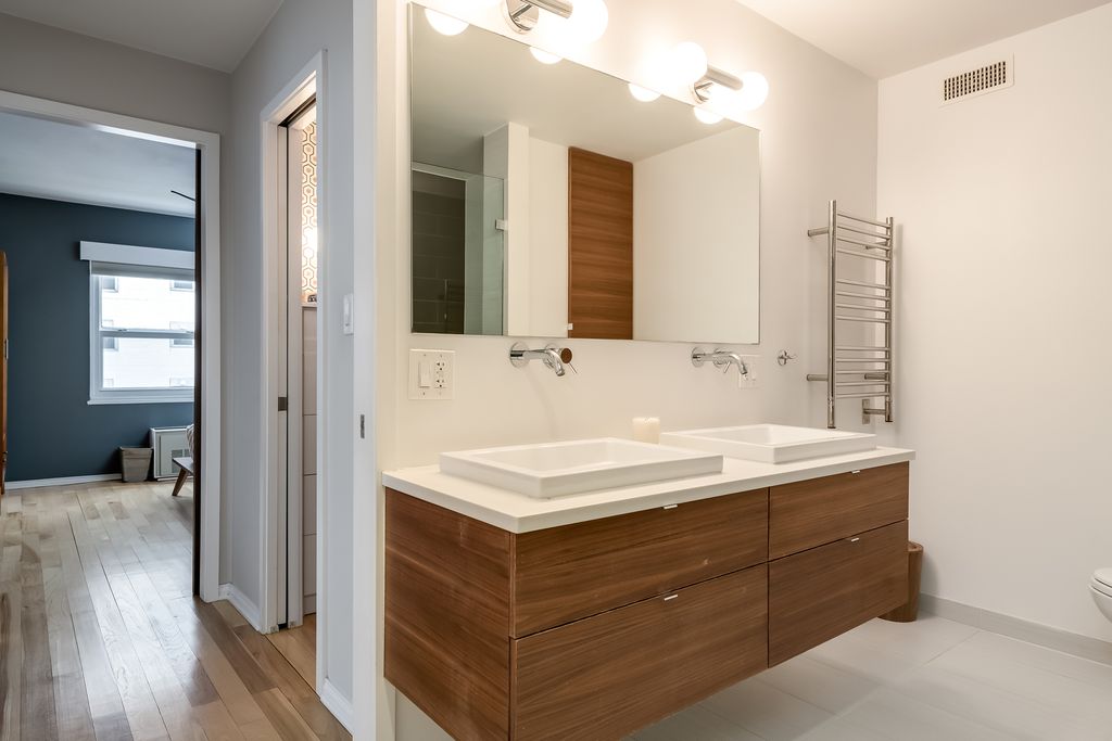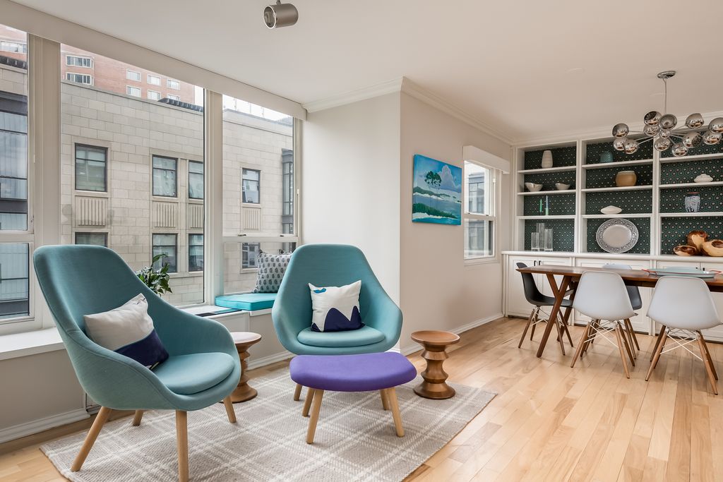 At 2,300 square feet, this exceptional corner residence delivers scale and sophistication in this primely located building in the heart of the Gold Coast. With north, east and west exposures and two private balconies, the four-bedroom, two-bathroom layout feels expansive yet intentionally zoned across a single level. A gallery style entry introduces a central moment that unfolds into two distinct, connected living spaces designed for both entertaining and everyday comfort. Designer lighting from Lightology dresses the home's clean lines with hickory hardwood flooring spanning the interiors and oversized windows capturing abundant light and rich, colorful textures from the fabled streetscape and blue waters of Lake Michigan. An impressive, oversized quartz waterfall island anchors the kitchen offering generous seating and prep space. Custom white cabinetry framed in warm wood adds depth, while stainless steel appliances integrate cleanly alongside a wine refrigerator and thoughtful storage. The space flows seamlessly into the northeast corner family room, wrapped in windows and connected to a private balcony that offers a glimpse of the lake and city below. The east-facing primary suite is set apart for privacy, layered in rich tones that create depth and calm. A generous walk-in closet with custom organization separates the sleeping quarters from the tranquil en-suite bath with a floating dual vanity with integrated lighting, heated towel rack and oversized glass-enclosed shower. Just beyond, framed by pocket doors, a flexible room functions as an office or guest suite, complete with a custom Murphy bed ideal for visitors. Across the residence, the dedicated dining area, defined by a full wall of custom built-ins set against designer wallpaper, extends into the formal living room, creating a gracious entertaining space. Integrated cabinetry and shelving provide storage and structure, while corner windows and a second private balcony offer another invitation outdoors. Two additional bedrooms reside in the west wing with customized closets and a full secondary bath. A dedicated laundry closet includes a new Bosch electric stack with space for shelving and storage. Just off the home's main entry sits a large, built-in mudroom with exceptional storage. 1313 Ritchie offers full-amenity living with 24-hour door staff, on-site maintenance, an outdoor pool and sundeck, fitness center, party room, bike storage, dry cleaning and salon. Substantial, recent updates include a 2023 driveway and pool refresh, 2022 facade restoration with balcony upgrades and new canopy, and a building-wide plumbing riser replacement fully paid by the current owner with elegant hallway renovations slated for completion by May. Two deeded garage parking spaces are available for purchase for $45,000. Storage locker included in price. Ideally perched in the heart of the historic Gold Coast, just moments from Oak Street Beach, the lakefront trail and the shops and dining within the neighborhood and along Michigan Avenue.