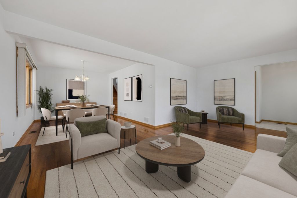 Simply Gorgeous! Welcome to this fabulous Home in the vibrant Dunning neighborhood set on a unique, and peaceful cul-de-sac! This Spacious 3 Bedroom, 2 Bath Tri-level can easily be expanded to a 4 Bedroom, as original owner chose not to have a 4th Bedroom (adding wall), adjacent to main floor Family Room and full Bathroom. As you step through the gracious foyer & enter the light-filled living space, you are greeted by the elegant Living Rm with welcoming Bay Window, which seamlessly connects to the formal Dining Rm. The generous-sized eat in Kitchen is adorned with a lovely Skylight, Brand NEW GE Stainless Steel APPLIANCES and overlooks the Family Room: the perfect retreat for relaxing in front of the cozy fireplace. Sliders open to the lovely landscaped back yard. The expansive top floor features 3 spacious bedrooms. Relax in style in the awesome Primary Suite with an indulging balcony. Huge lower level provides extended living space with a great Rec area, and a Laundry room. This well-kept residence boasts gleaming hardwood floors, FRESHLY PAINTED Main floors and Brand NEW CARPET in Family Room, Windows replaced @ 2017, toilets replaced, sump-pump & battery back up. Convenient side driveway leads up to a gated yard with a 2 car Garage. Location of this home is ideal, with close proximity to transportation options, school, forest preserve and public parks. Great local dining & shopping options. Make this exceptional property your home sweeet home! Estate Sale. Property conveyed As-is.