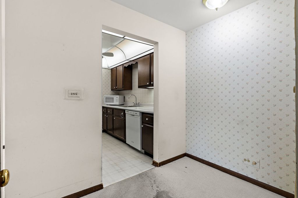 Long time owner says it's time for a new owner to enjoy this spacious condo. Great potential and opportunity with this sunny SW corner unit overlooking the parkway. Unit offers three bay windows and a large foyer to welcome your guests. There's an extra nook off the kitchen for a breakfast table, office space OR expand the kitchen area! The primary bedroom has a private bath with walk-in shower. Both bedrooms are roomy and have large closets. Additional features include indoor heated garage parking, dedicated storage closet, common laundry area and recently renovated lobby/party room and hallways. Conveniently located to Grammar, Middle and High Schools. Enjoy being surrounding by the forest preserve with walking and bike paths. Close to transportation and O'Hare. This property is being marketed "AS IS"