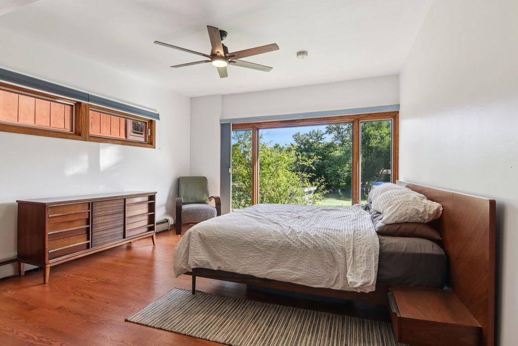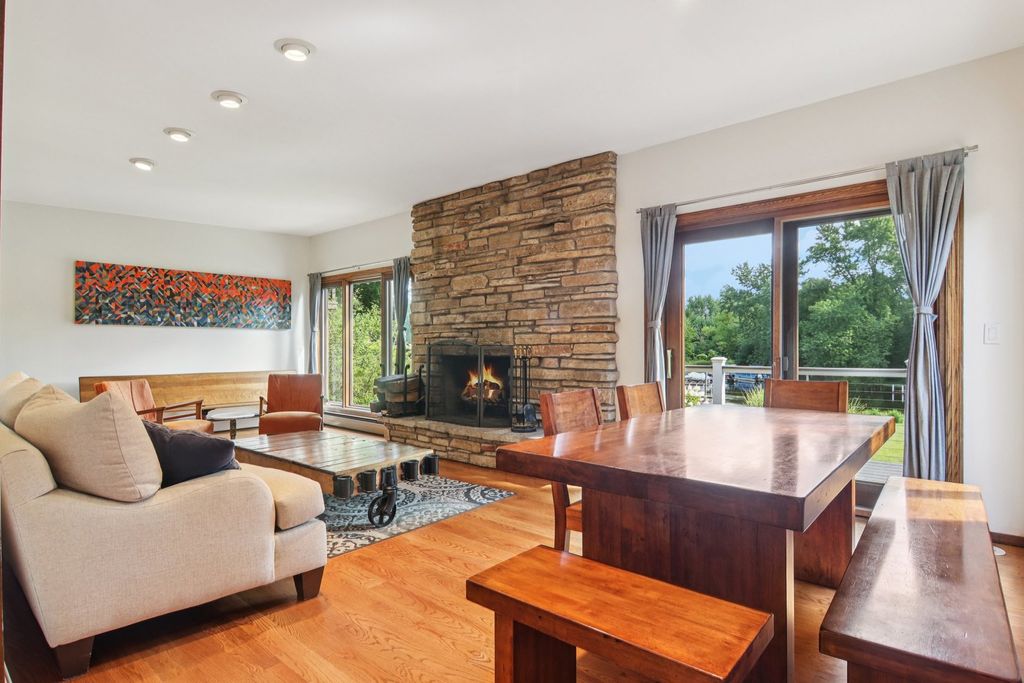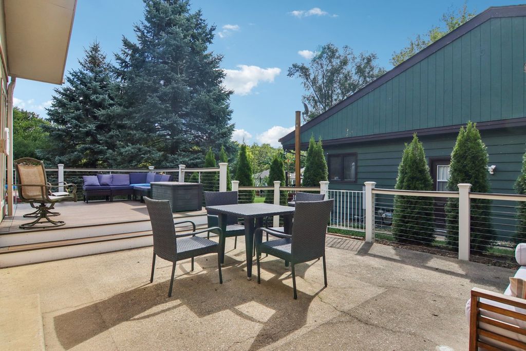 Beautiful brick & cedar ranch home with walkout basement on the channel to Petite Lake and the Fox River! This unbeatable location offers waterfront living with ample land and a beautifully landscaped yard. Enjoy your patio overlooking the water, your permanent U-shaped pier, and a huge new deck (2023) perfect for entertaining. Inside you'll find two wood-burning fireplaces, a spacious upstairs bedroom with new hardwood flooring, and a fully applianced kitchen updated in 2022 with granite countertops, new dishwasher, microwave, and backsplash. The walkout lower level features laundry, large bedroom, and full bath. 2,000 total SF! Major updates include roof (2019) and AC (2025). Also included with the home is an electric vehicle charger. Quiet neighborhood yet close to shopping, Fox Lake Metra to downtown, state park, and schools-move-in ready lakefront living!
