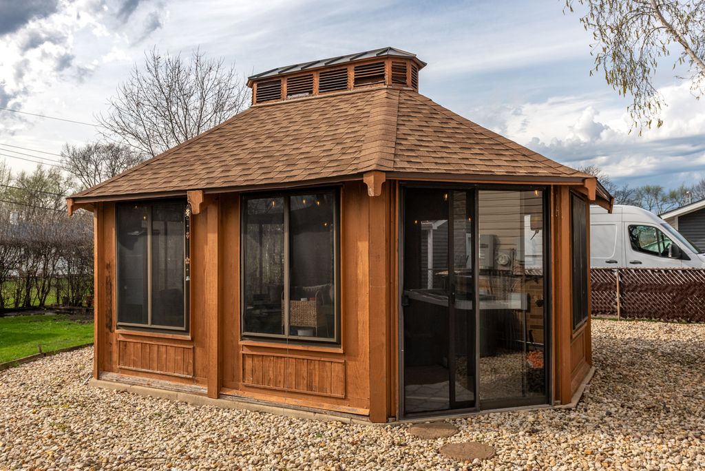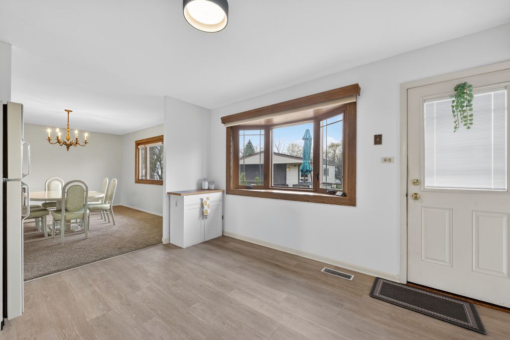 Start your next chapter here! You will fall in love with this beautifully maintained split-level home in Hoffman Estates with 3 bedrooms, 1.5 bathrooms, and a 2-car detached garage. Step inside to a bright and inviting living room filled with natural light from a large picture window, complemented by a cozy fireplace. The layout flows seamlessly into a separate dining room-perfect for entertaining. The kitchen offers wood cabinetry, plenty of storage, and ample table space. Upstairs, you'll find three good-sized bedrooms and a full hall bathroom. The finished lower level adds even more living space, complete with a recreation room, bar area, and half bath. Enjoy entertaining in the gazebo or having summer bbq's on the backyard patio. Recent updates: installed closet inserts, new washer and dryer, painted walls and trims. Great location close to schools, shopping, restaurants, parks, forest preserves transportation and much more! Don't miss out!!!