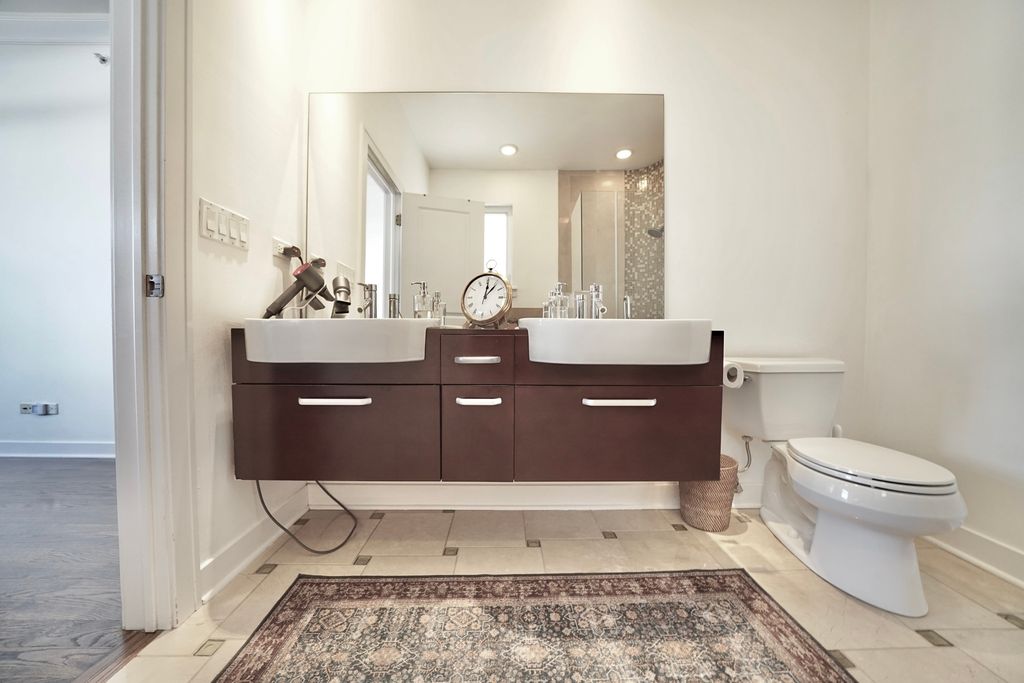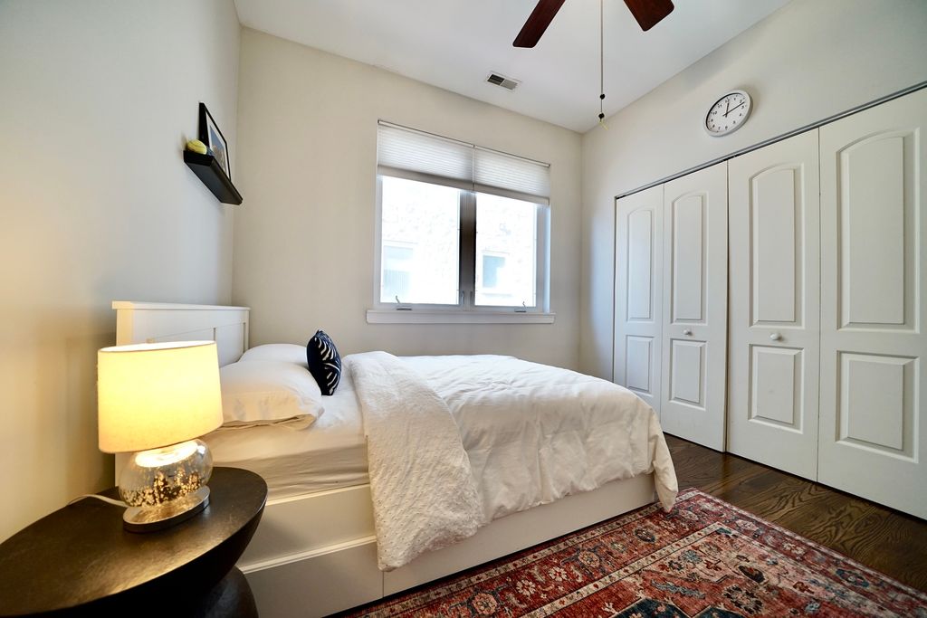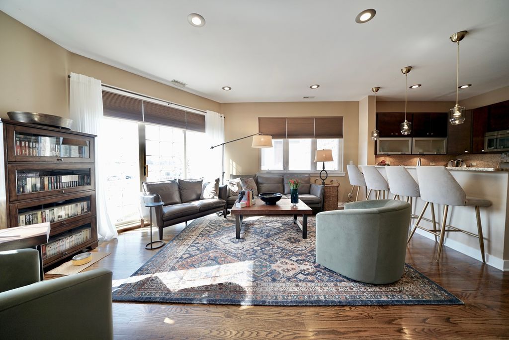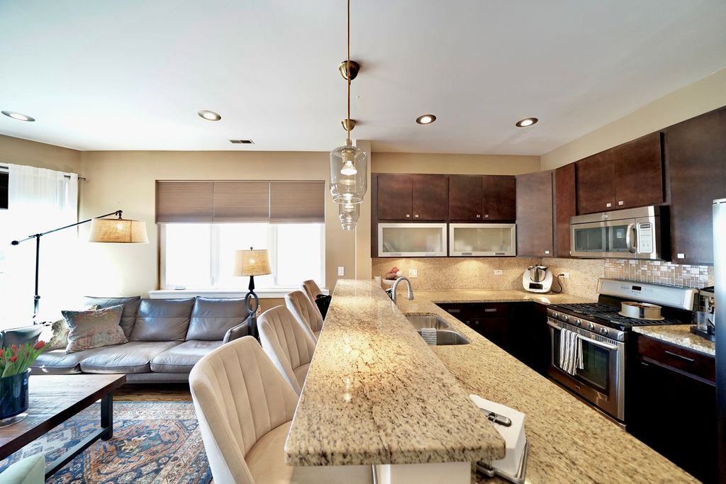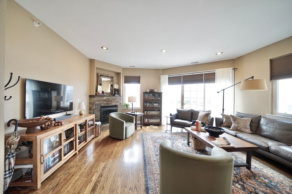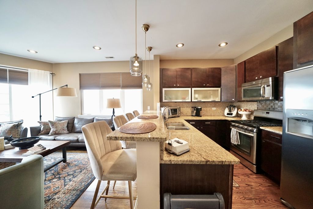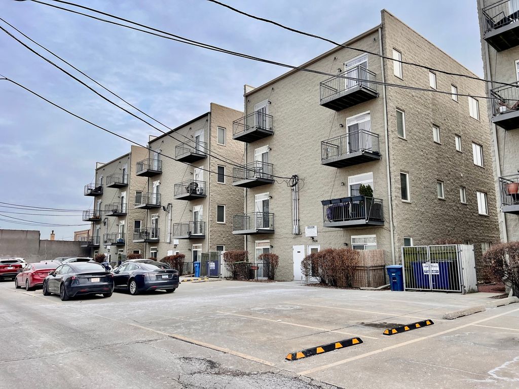 Welcome to this amazing 2-bedroom, 2-bathroom condo located in the heart of Elmwood Park, perfectly positioned near shopping, dining, Metra access, and convenient bus transportation. Situated on the 2nd floor, this beautifully maintained home offers a comfortable and stylish living experience with an ideal blend of space, functionality, and location. Step inside to find soaring 9-foot ceilings and rich walnut hardwood floors throughout, creating a warm and inviting atmosphere. The sun-filled living room features a cozy gas fireplace, large windows, and sliding doors that bring in abundant natural light while offering access to outdoor space. Custom light fixtures throughout the home add character and a modern touch. The kitchen is thoughtfully designed with quality cabinetry and granite countertops, providing plenty of workspace for everyday living and entertaining. Central air conditioning and forced-air heating ensure year-round comfort, while pre-wired speakers in the living room and kitchen enhance the entertainment experience. The spacious primary suite offers a private balcony and an en-suite bathroom complete with a double vanity, separate shower, and relaxing jacuzzi tub. The 2nd full bathroom showcases custom tile finishes, adding a refined and polished feel. Additional conveniences include an in-unit washer and dryer, ample storage, and a layout designed for easy living. The building is investor-friendly, making it a great opportunity for both homeowners and investors alike. With its prime location and easy access to transportation and local amenities, this condo offers the perfect combination of comfort, style, and everyday convenience.