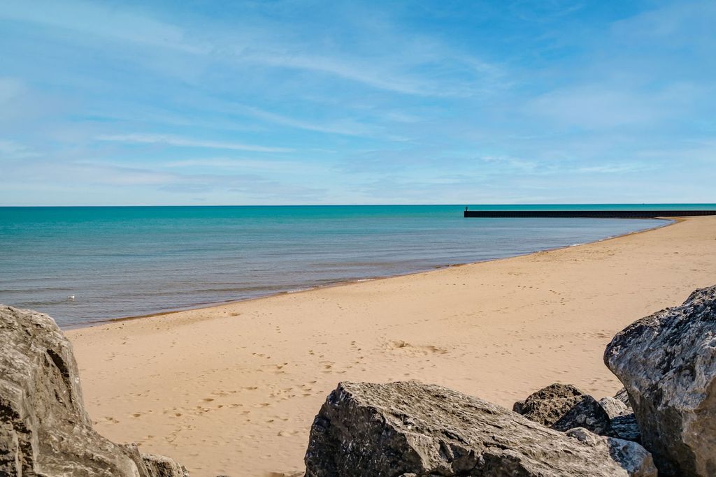 Welcome to Sheridan Square - the only block in Evanston offering true lakefront condominium living. This beautifully renovated first-floor, 2-bedroom, 1-bath home is located in a building listed on the National Register of Historic Places and offers sweeping Lake Michigan views. The light-filled floor plan features high ceilings, refinished hardwood floors, fresh paint, and a fully remodeled chef's kitchen and bath. The spacious living room with decorative fireplace overlooks the lake, and the adjacent dining room is ideal for entertaining. Move-in ready with in-unit laundry, private one-car garage, assigned storage, and access to bike, hobby, and gardening rooms. Recent building updates include a new roof (2019) and tuckpointing (2022 & 2025). Walk to the El, Metra, and the shops and restaurants of the Main-Dempster Mile. A rare opportunity to own on Evanston's iconic lakefront.