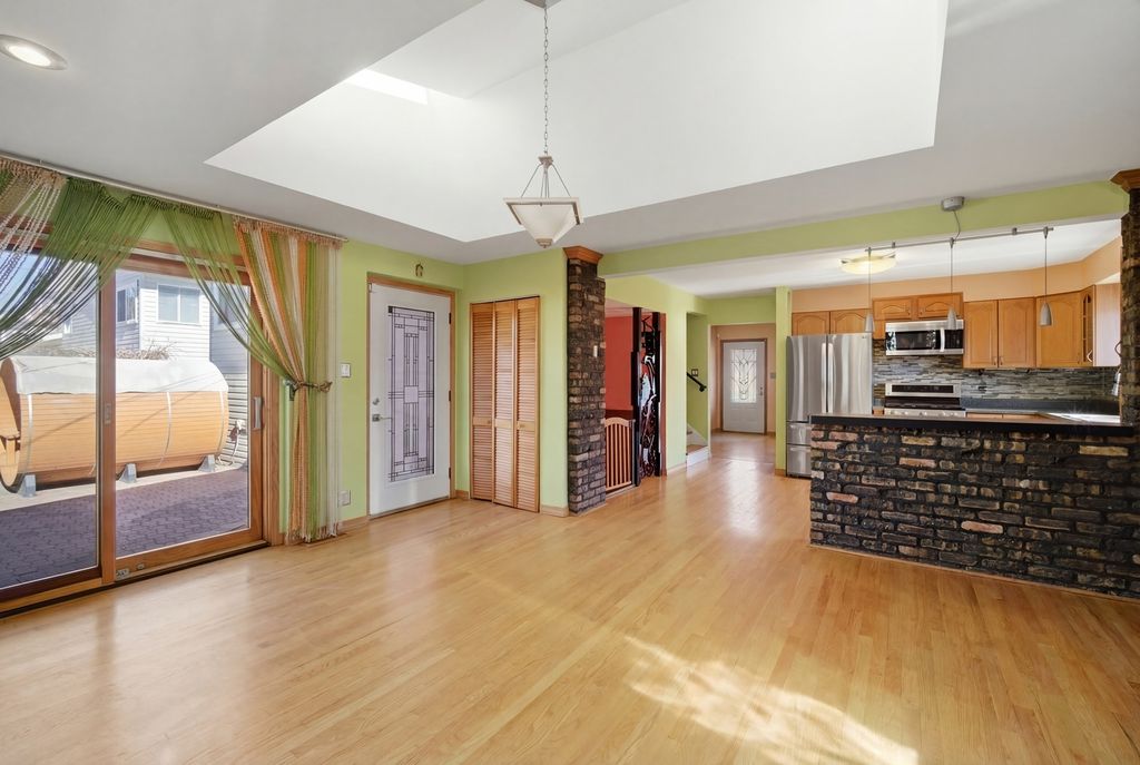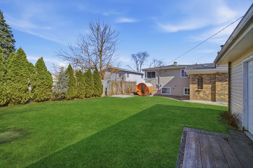 Rare opportunity to own a custom-built split-level home in Addison offering space, character, and a warm, family-loving atmosphere. This exclusive 3-bedroom, 2-bath residence stands out with its unique design and thoughtfully customized layout. The main and upper levels feature hardwood floors, complemented by durable ceramic tile finishes. The bright living and dining areas provide excellent natural light and comfortable flow for everyday living. A highlight of the home is the custom family room, perfect for entertaining or relaxing. This inviting area features a cozy fireplace and two skylights that bring in beautiful natural light, making the space feel open and welcoming. Major updates include a new roof (2021) and newer roof windows/skylights. The kitchen is equipped with newer appliances (2024), including a microwave, stove, and refrigerator, and all appliances stay. Step outside to enjoy the spacious backyard retreat, complete with a sauna, included with the home - your own private spa-like escape. A 2-car detached garage offers additional convenience and storage. Lovingly maintained and truly one of a kind, this move-in-ready home is a rare find in Addison. The seller is selling the property AS-IS