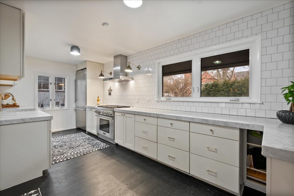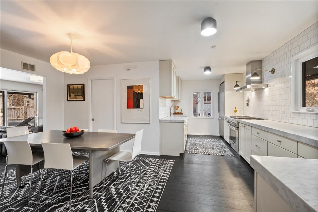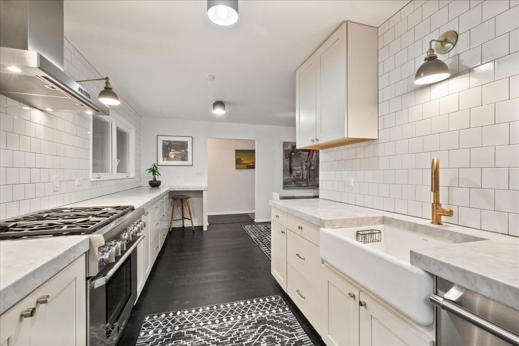 MULTIPLE OFFERS! H & B DUE MONDAY 3/2 5PM! EXTREMELY RARE! Stylish + Sophisticated 4 bedroom, 2 bathroom Mid Century Modern Ranch on oversized 60 x 148 lot in Dewey Elementary! Open floor plan w/ wall of windows overlooking 54' patio and huge fenced/landscaped backyard oasis with fire pit and playhouse. Stylish kitchen w/ stunning marble counters and Thermador appliances-2017. 24 x 16 Living Room boasts a woodburning fireplace made convenient w/ a gas starter and abundant space for lounging and entertaining. Generously sized bedrooms each easily fit a king sized bed. Primary bedroom has ensuite bath w/ double vanity huge soaking tub and ample closet space. 4th bedroom is shown as Family Room. Gorgeous wide plank hardwood floors thru-out! MASSIVE attached garage w/ room for 2 cars and tons of storage! PERFECT location, walkable to shops, restaurants, and the lake!