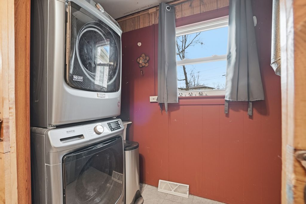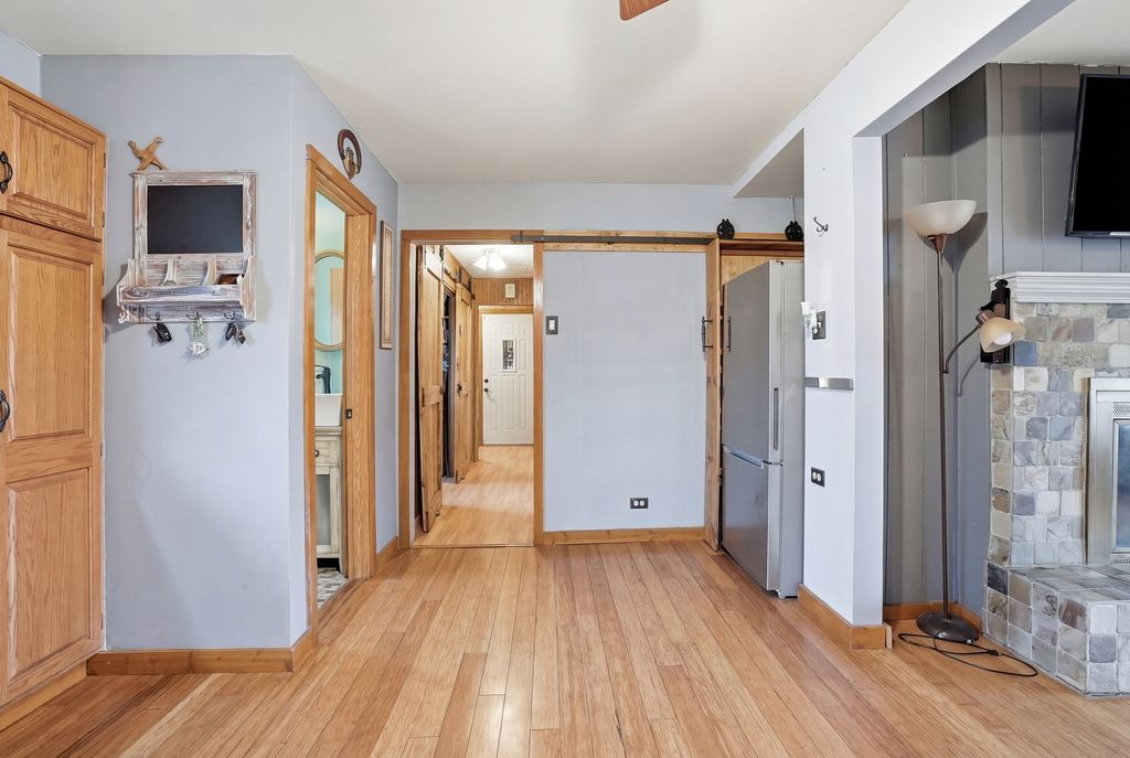Welcome to Your New Home! This spacious 3-bedroom, 1 full and 2 half bath home offers room to live, entertain, and enjoy - all on a beautifully secluded lot of over 1/2 an acre! Step into the impressive 23' x 18' family room featuring wood laminate flooring, a wet bar, and a half bath that has all new plumbing. You have two separate doors that both open to a huge wood deck overlooking the expansive backyard - complete with a storage shed and plenty of space to relax or entertain. The inviting living room showcases a natural brick wood burning fireplace, creating a warm and welcoming atmosphere. Your kitchen is open and airy with tons of natural light and NEW BUTCHER BLOCK countertops. Major updates and features include: Newer electric wiring, new plumbing for back half bath, Newer doors and woodwork throughout, Newer vinyl siding, soffits, fascia, gutters and a New roof (only 8 months old). Car enthusiasts and hobbyists will love the HEATED 2 1/2-car garage with durable epoxy easy-clean flooring, an oversized driveway, and 220-volt outlets - truly a mechanic's dream! Located in a quiet, secluded setting yet conveniently close to shops and transportation, this home offers the perfect blend of privacy and accessibility. Don't miss your opportunity - schedule your showing today!