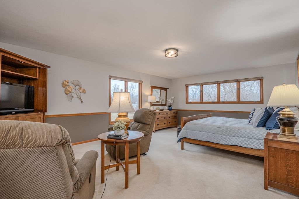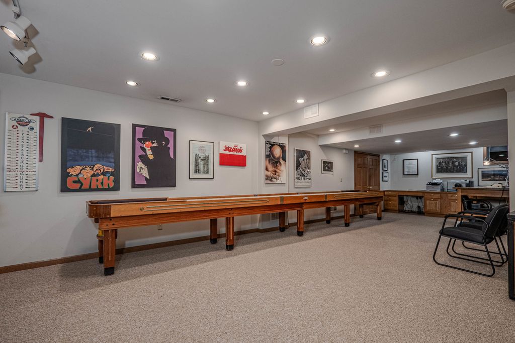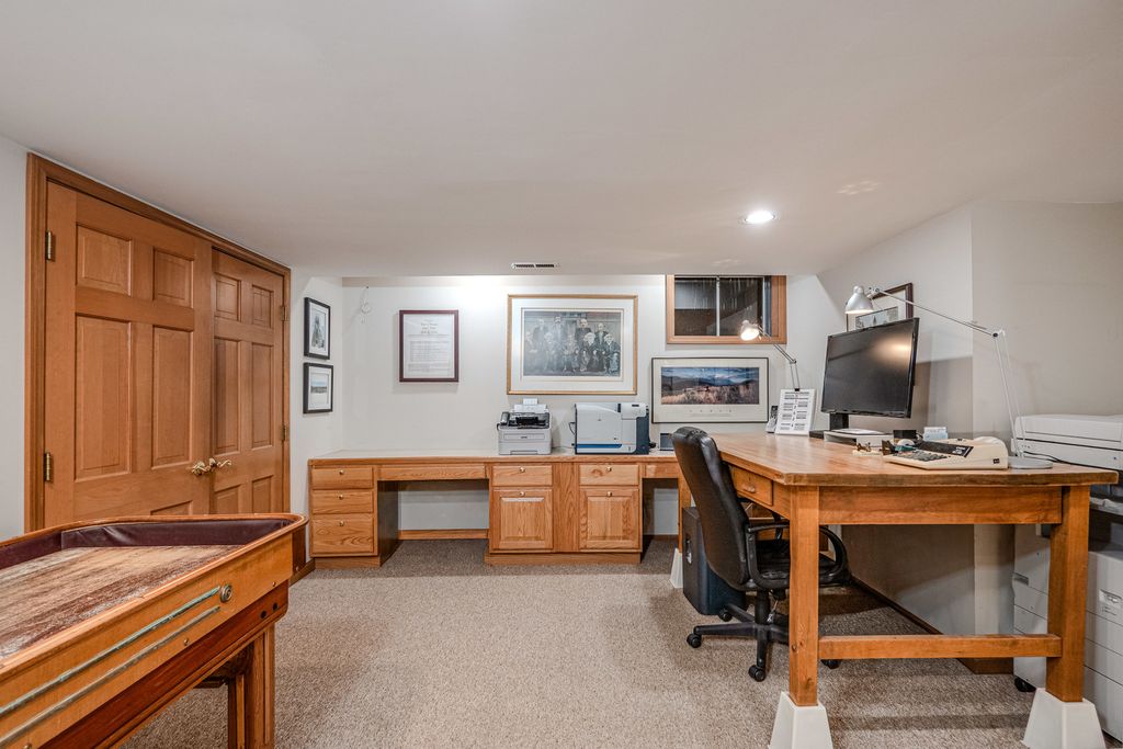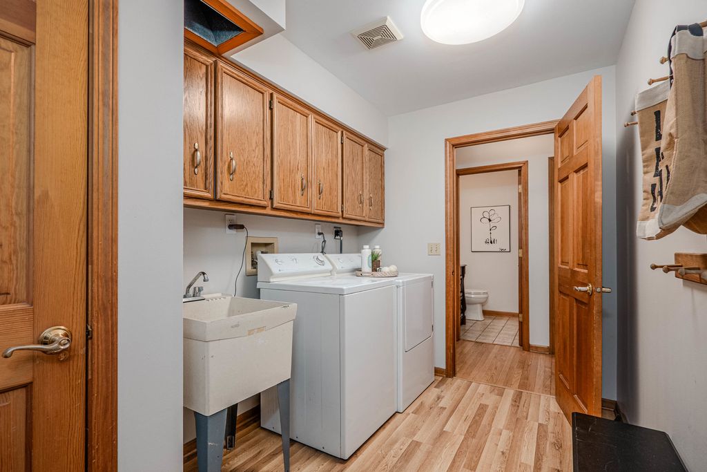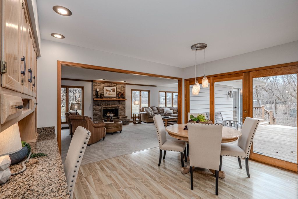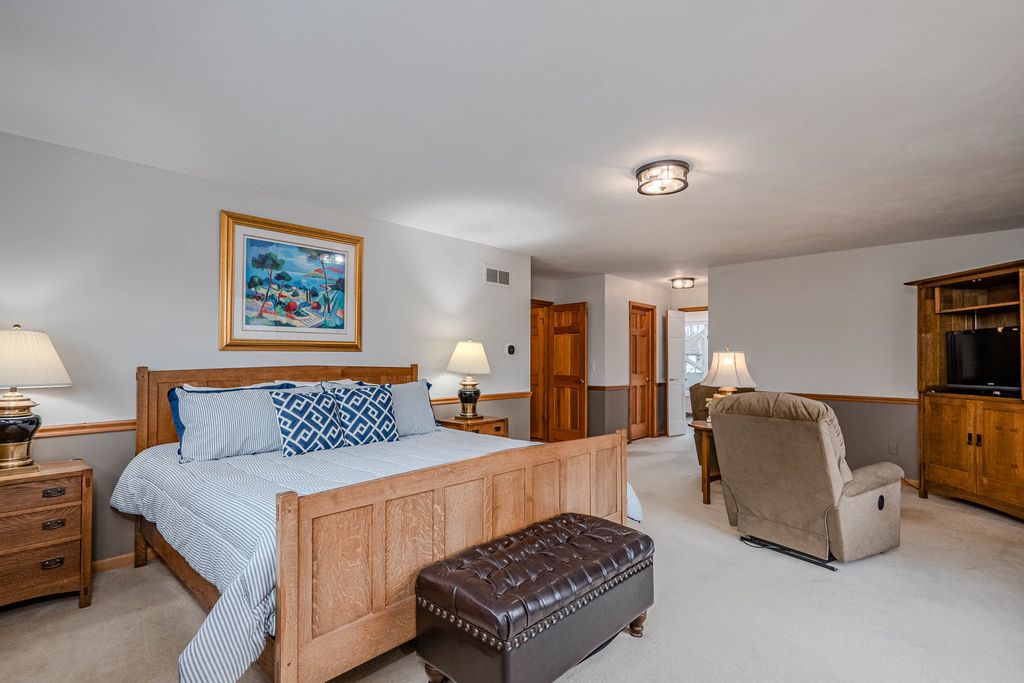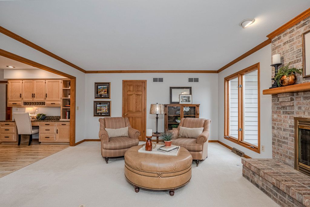 COME FOR THE HOME...STAY FOR THE LOT & LOCATION. Step through the double doors into a stunning two-story foyer that sets the tone for the home. Rich hardwood floors extend as far as the eye can see. Behind another set of double doors, the den offers a full wall of custom built-ins, creating an ideal space for working from home or focused study time. Oak floors with cherry inlay create a distinctive, custom look in the living room. When the home was custom built, the owners installed vintage pillars from their prior home, creating a distinctive architectural transition between the living and dining rooms. Step from the dining room onto a sprawling deck that spans the width of the home, ideal for hosting gatherings & taking the party outside. The chef in the family will appreciate the generous kitchen, designed to comfortably host a crowd. With the desirable open floor plan, the kitchen flows seamlessly into the family room, creating an inviting space for living & easy entertaining. The family room features a wood-burning fireplace, skylights & a vaulted ceiling alcove. This room also offers direct access to the deck. The laundry room is conveniently located on the 1st floor & who doesn't love a laundry chute? Upstairs you will find 4 BR's & 2 full bathrooms. The generous primary suite boasts 2 walk-in closets & a beautifully refreshed, oversized bathroom. The secondary bedrooms share a spacious, refreshed bath complete with double vanities, a walk-in shower & a tub. The home continues to impress with a finished walkout basement that opens directly to the backyard, creating effortless indoor-outdoor living. The lower level is rounded out by a 5th BR, full bathroom, 2 spacious recreation spaces & a wet bar. Situated on nearly an acre at the end of a quiet cul-de-sac, the property features a beautifully wooded backyard with added privacy. Some updates & improvements are: Exterior painted - 2025, majority of interior painted - 2025, Roof 2012, 1st & 2nd floor furnace & A/C -2017, 2nd floor A/C - 2008, 50 gallon H2O heater 2016, Hardwood floors refinished 2020, majority of lighting replaced 2025.