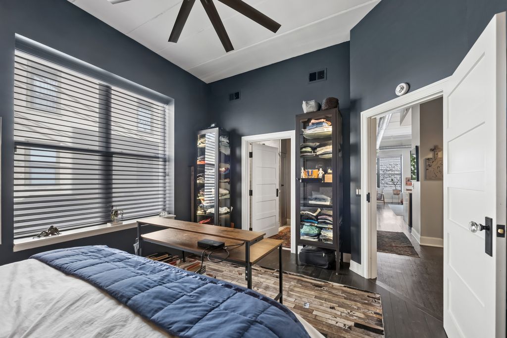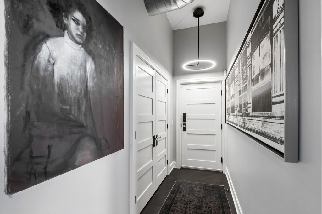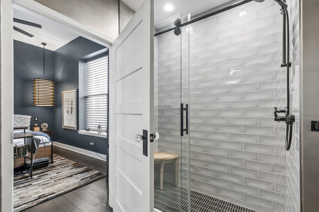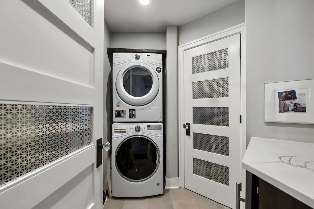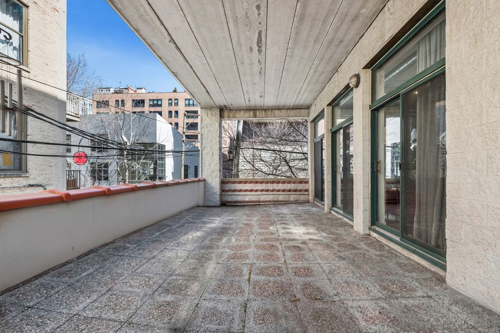 Rarest unit offered this year just in time for the Spring market. Residence A2 offers an attached private 26' terrace with water and electric. Very special northeast corner home fully renovated with professional designer, in a boutique style, all concrete (Flex-core) building located in the heart of the West Loop offers the finest contemporary finishes. Small elevator building, Butterfly system and camera security, attached, heated garage parking. Interior features include a very inviting formal entry, custom contemporary light fixtures throughout this home, separate laundry room with full size, front loading Whirlpool (Hybrid Care) washer and dryer, wine fridge, 1.25" white quartz with grey veining folding counter. All "tongue and groove" hardwood floors. Wide plank flooring in primary suite, walk in closet with floor to ceiling built-in storage. Five panel, rectangle doors throughout. Ensuite bathroom featuring porcelain floor tiles, frameless shower glass, custom, ridged imported, colored subway tile, black plumbing fixtures, recessed niche for accouterments, superb custom-tiled basin, raised all wood vanity, straight edge drawer hardware, 1.25" marble counter, under mount Rainbow sink, recessed medicine chest. Silhouette shades, honeycomb, bedside light fixtures, 7-blade ceiling fan. Impeccable baseboards and moldings, open kitchen concept all wood, 42" cabinets with substantial crown on upper cabinets, dovetailed joints. Entertainer's peninsula with waterfall edge, quartz counters, full height backsplash, deep, single, stainless steel Moen sink, Blanco sprayer faucet, push-button disposal, French door refrigerator, Bosch dishwasher, all stainless steel appliances. Guest bathroom dressed in large format porcelain "Green Home Chicago" ceramic tile, frames glass, niches. Second bedroom currently partially open as versatile space. Separate dining and living areas with room for home office. Custom Millwork and stone/quartz highlights and accents, a pair of low profile oil fireplaces. No expense spared. Bring your most discriminating buyer. Prime garage parking space @ $30,000 additional.