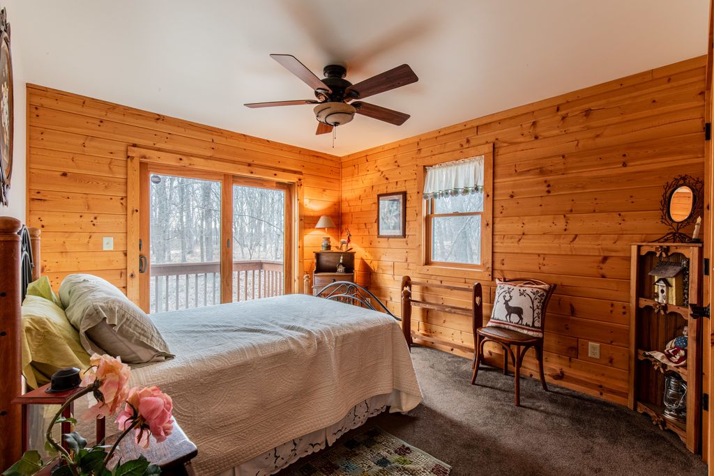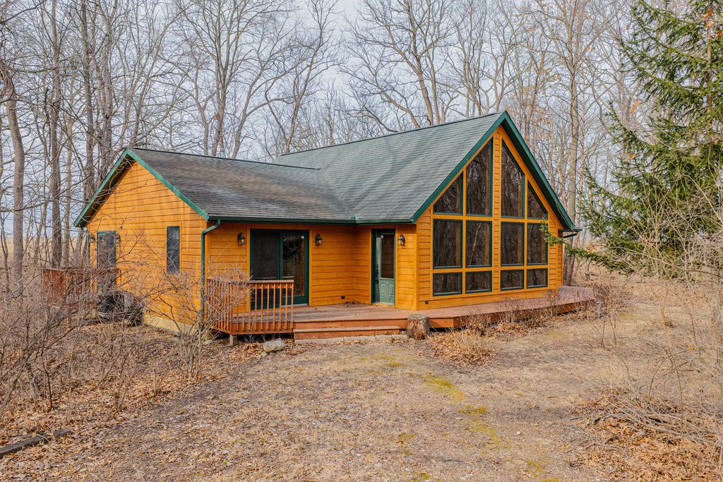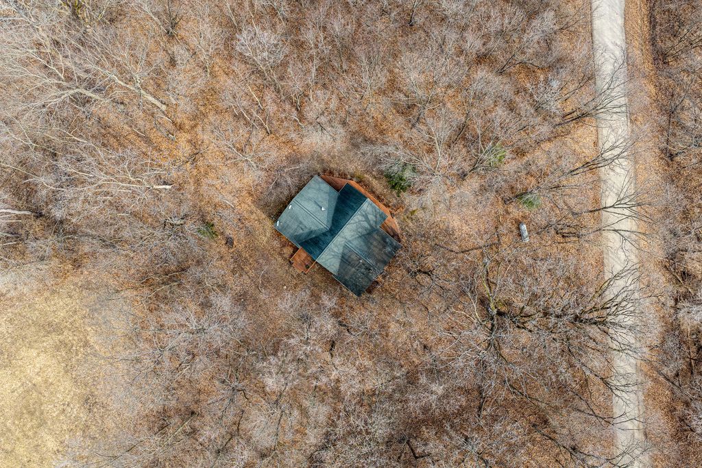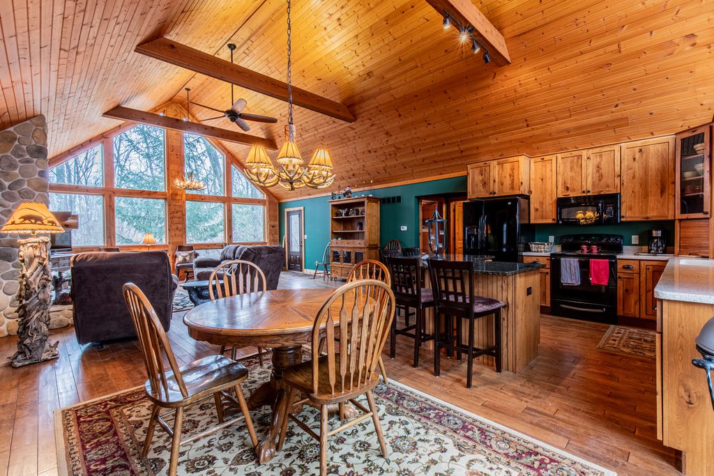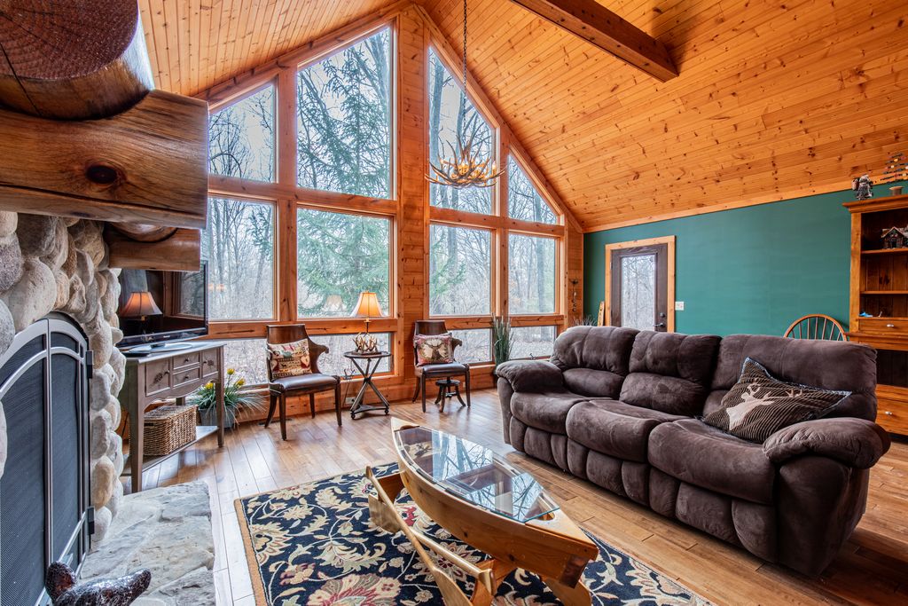 Tucked away in the woods on over 2/3 of an acre, this beautifully maintained 3-bedroom, 2 full bath cedar home offers the perfect blend of rustic charm and modern comfort. Built in 2010 and lovingly used only as a weekend retreat, the home feels almost brand new - meticulously cared for and move-in ready. Step inside to a thoughtfully designed split-bedroom floor plan that provides privacy and functionality. The heart of the home is the stunning great room, where a striking stone gas fireplace anchors the space and soaring windows frame breathtaking wooded views. Natural light pours in through oversized windows, creating the perfect setting for deer and bird watching while seamlessly bringing the outdoors in. The kitchen is both beautiful and practical, featuring granite countertops, abundant cabinetry, and a spacious island with seating - ideal for casual meals or entertaining family and friends. The private primary suite is a true retreat, complete with serene views and a luxurious en suite bath offering a large walk-in shower, whirlpool tub, and generous space to unwind. Downstairs, the poured concrete, unfinished basement provides exceptional potential. Whether you envision additional living space, a recreation room, home gym, or guest quarters, the possibilities are endless. Located on a quiet street with only one neighboring home beyond it, this property offers privacy, tranquility, and the peaceful lifestyle you've been dreaming of - all while being gently lived in and exceptionally well maintained. If you're looking for a move-in-ready cabin that combines modern amenities with natural beauty, this is the one.